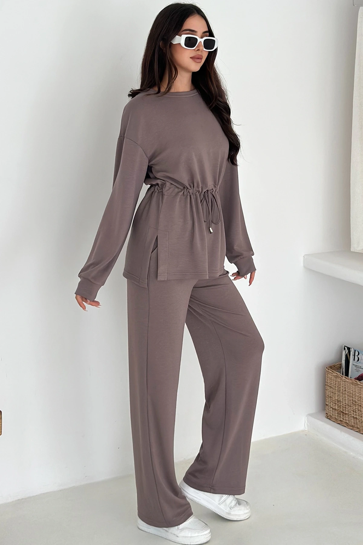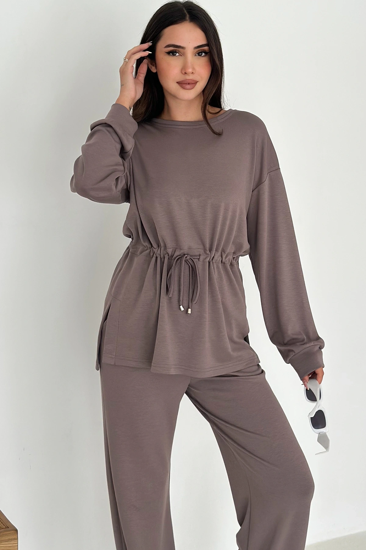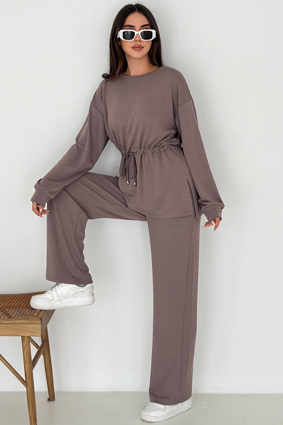 Beli Bağcıklı Yanı Yırtmaçlı Modal Takım