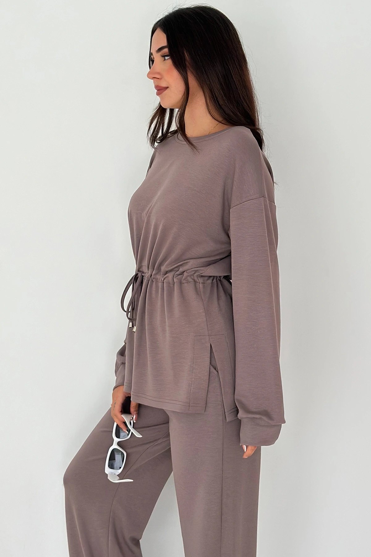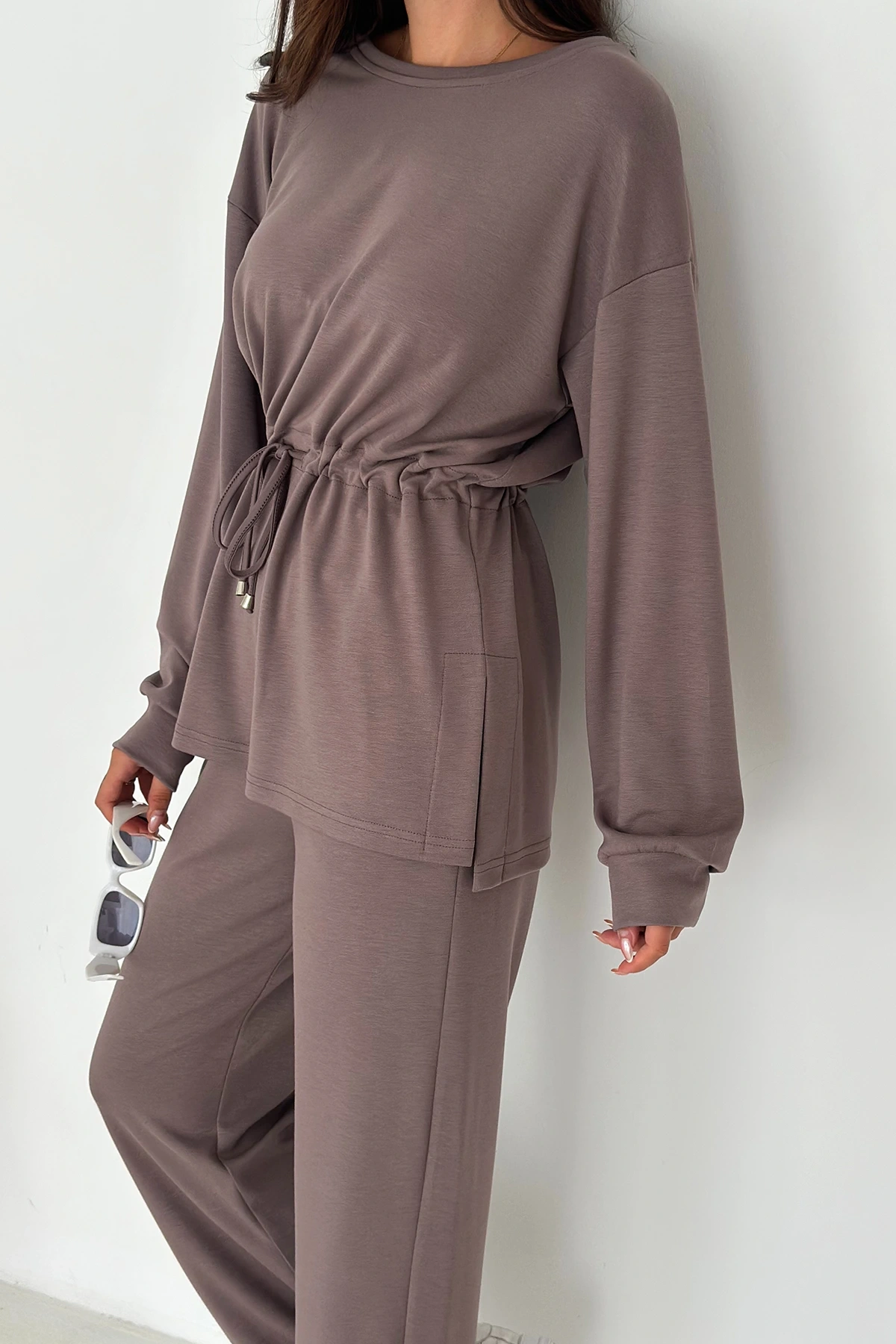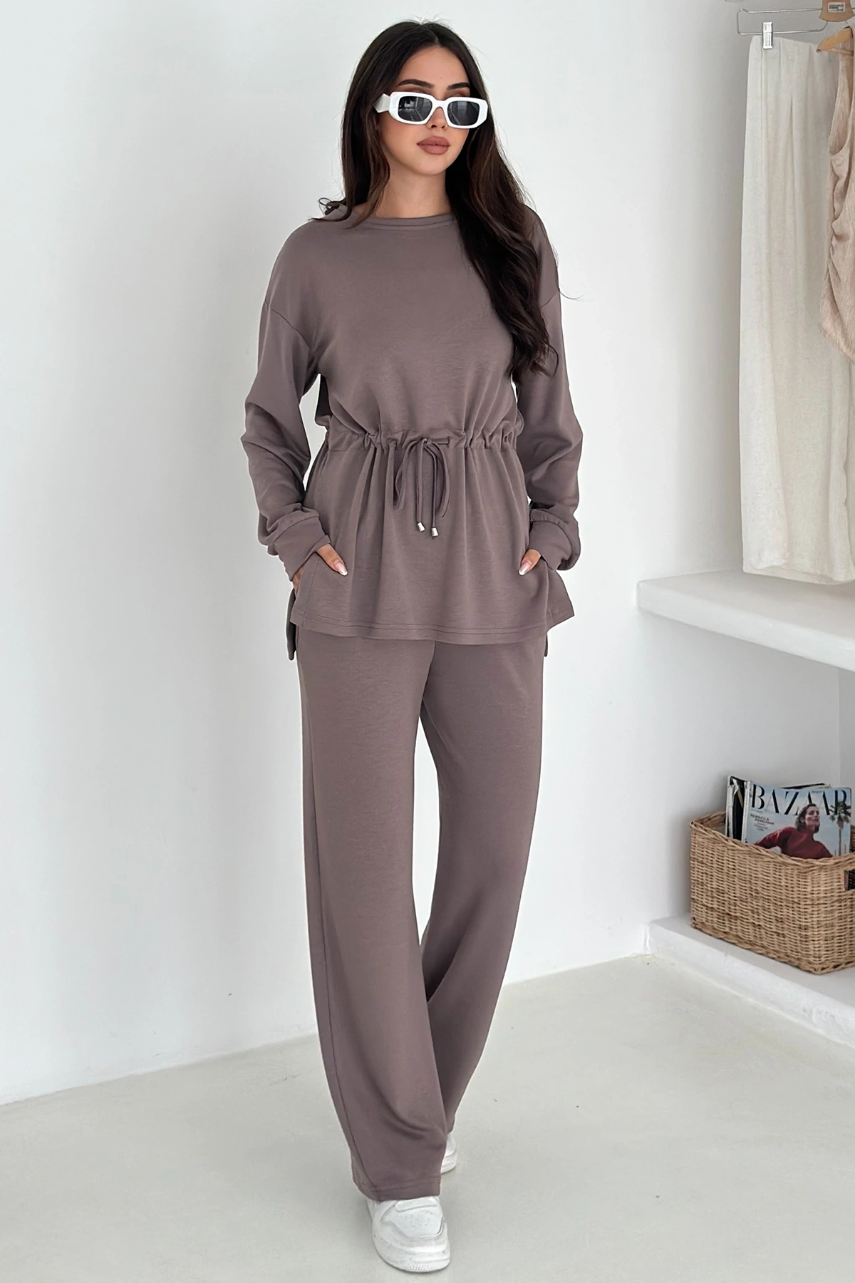 Beli Bağcıklı Yanı Yırtmaçlı Modal Takım