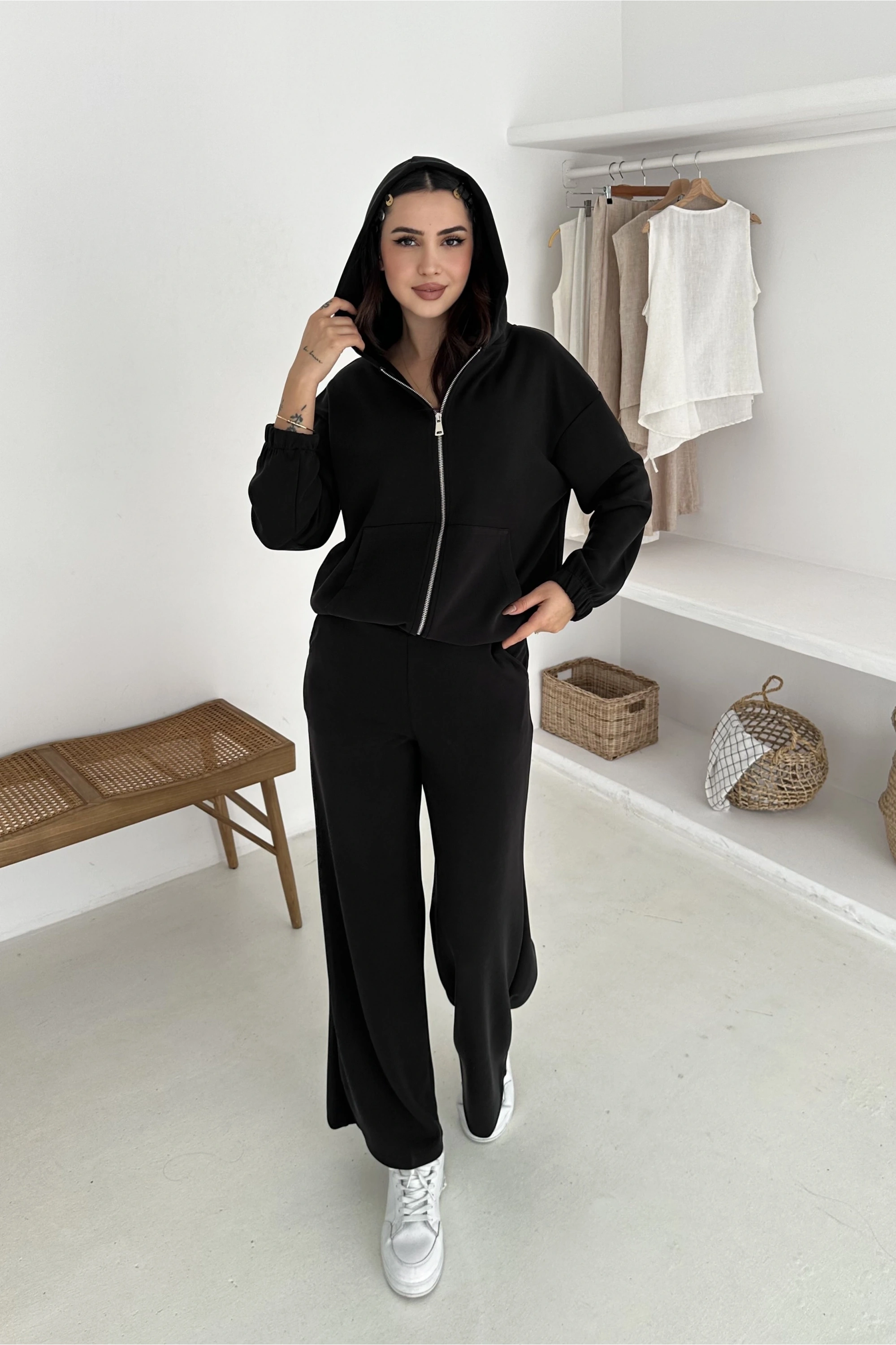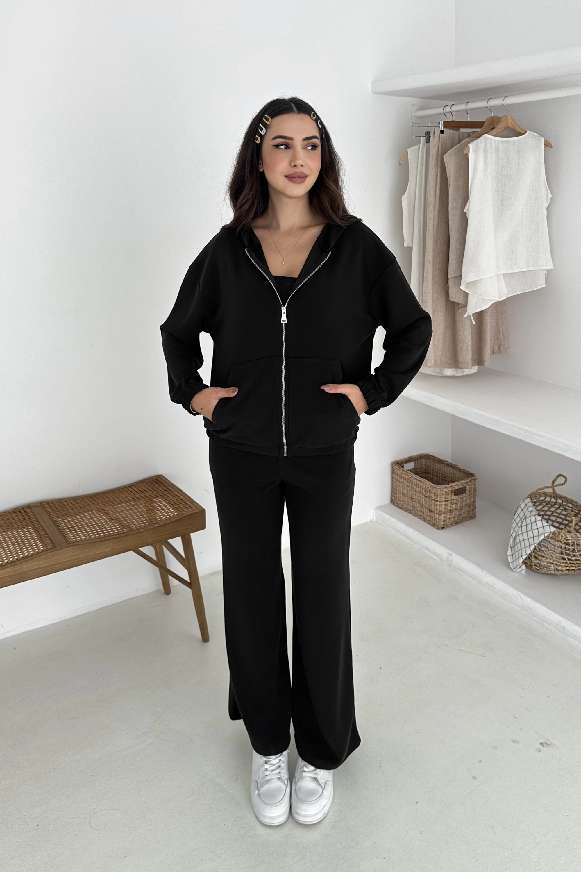 Beli Lastikli Fermuarlı Kapşonlu Premium Kalite Modal Takım