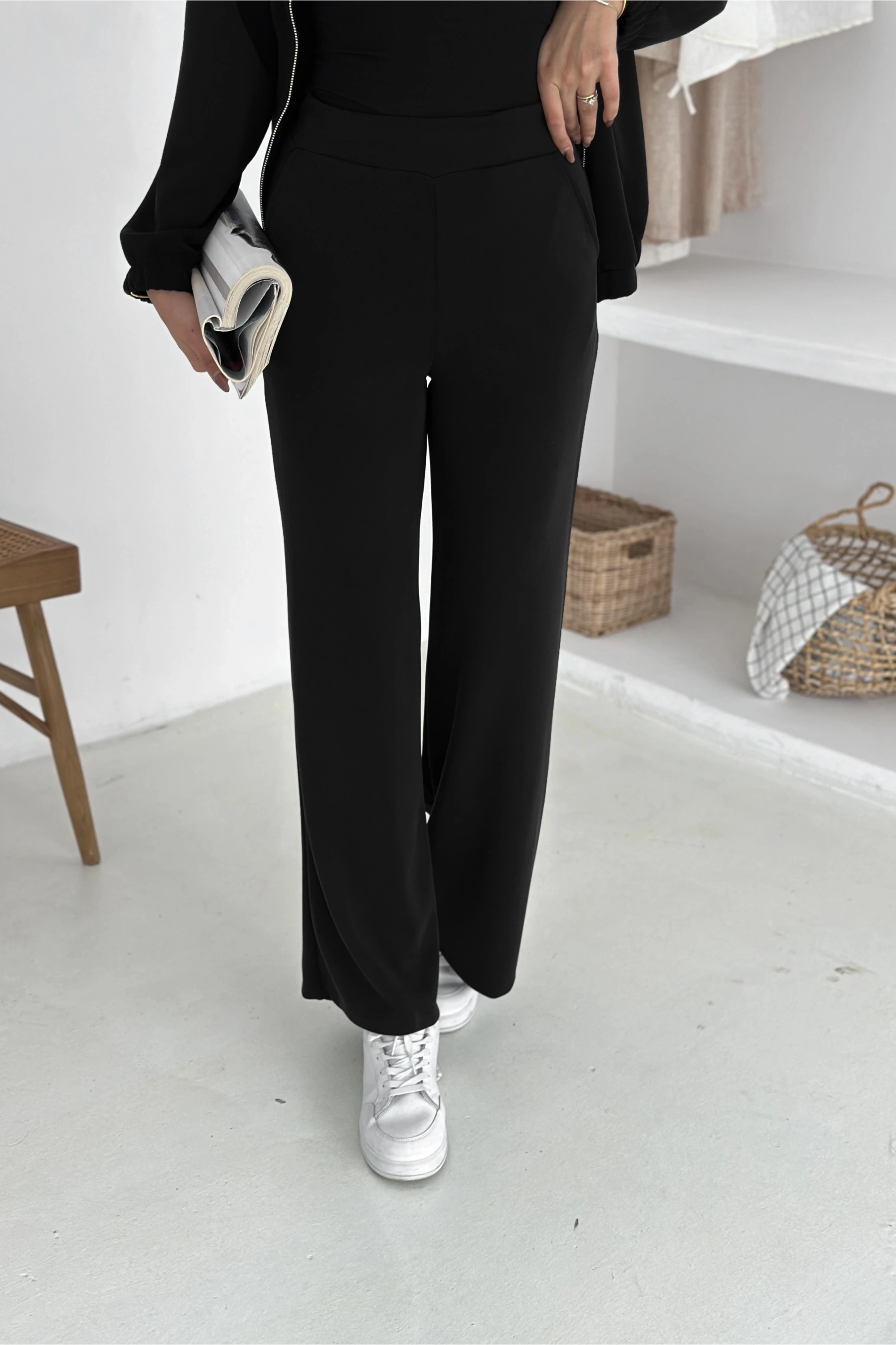 Fermuarlı Bel Detaylı Palazo Pantolonlu Modal Takım