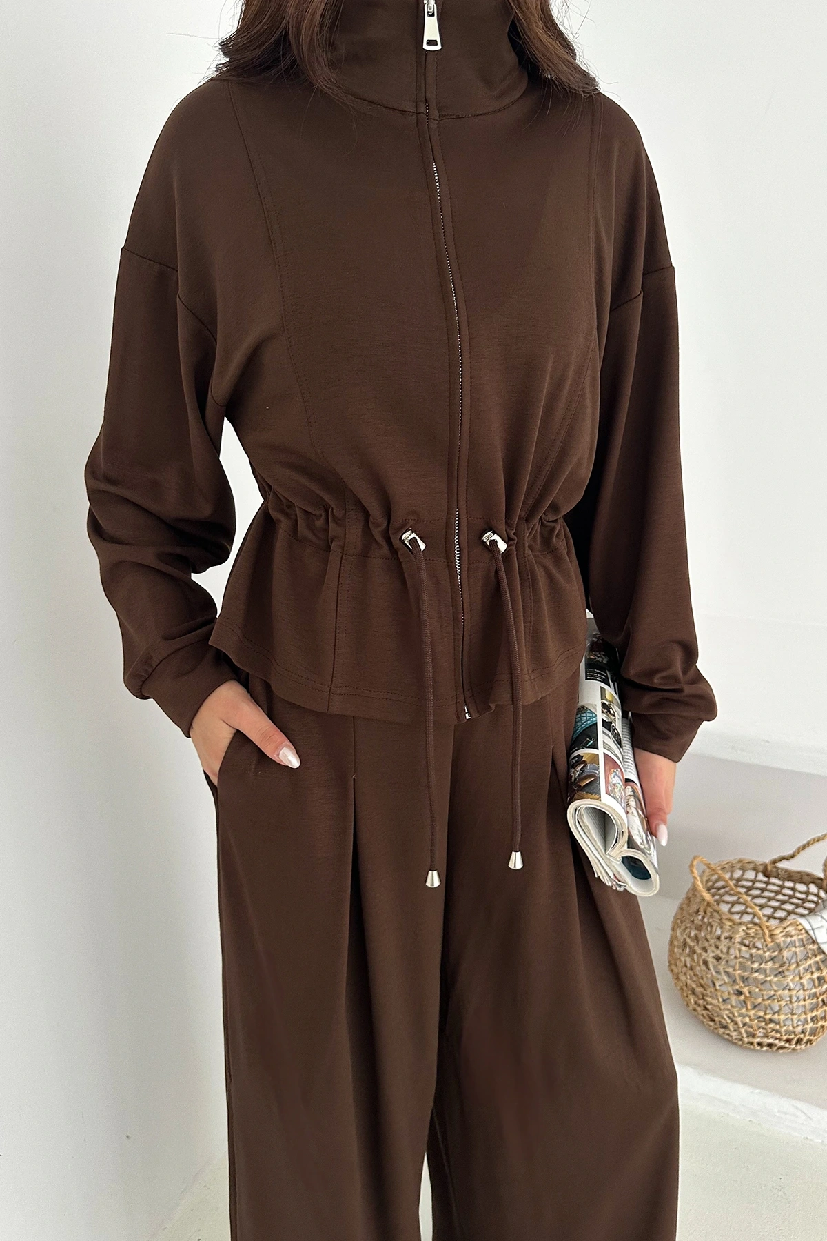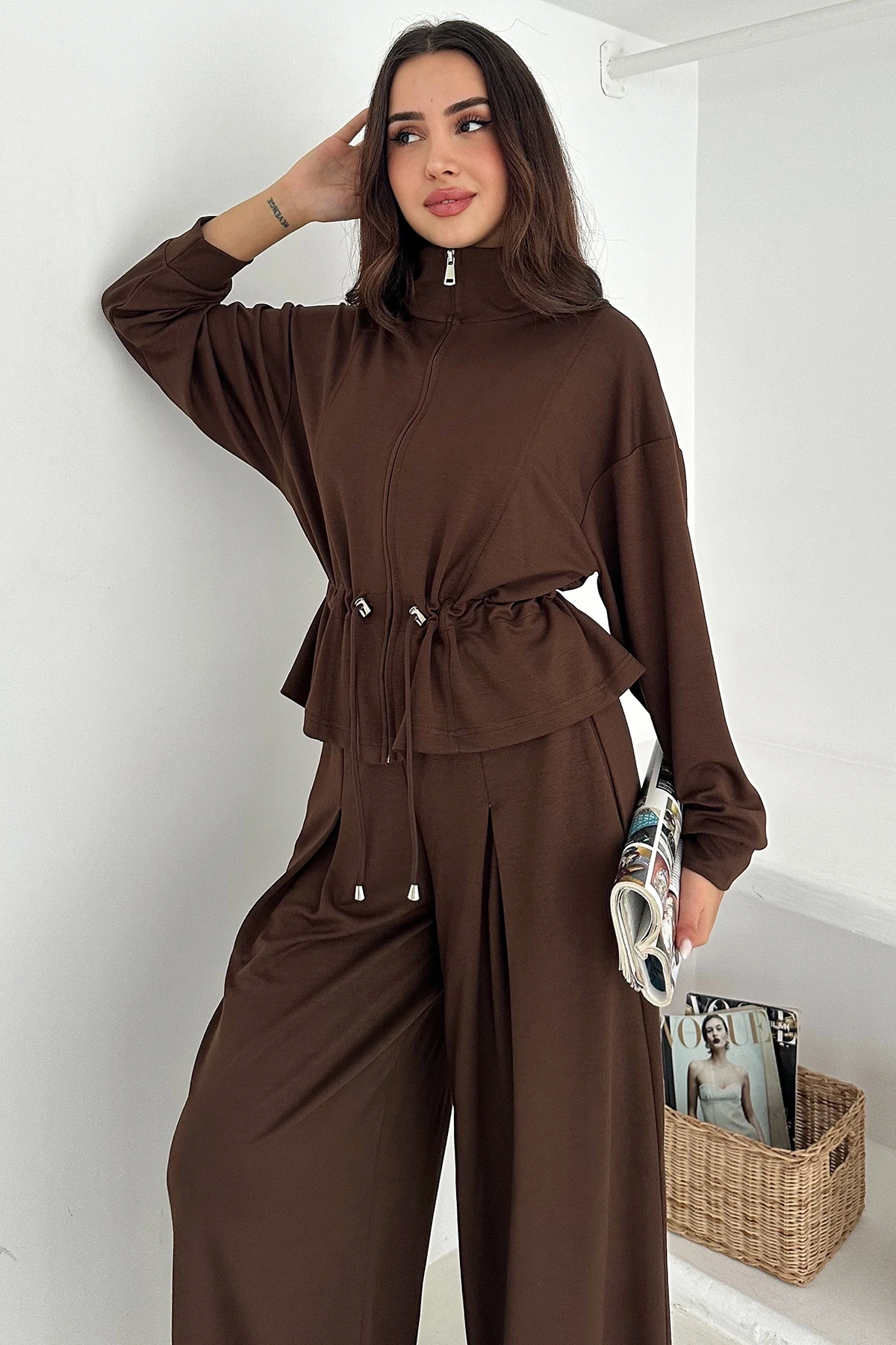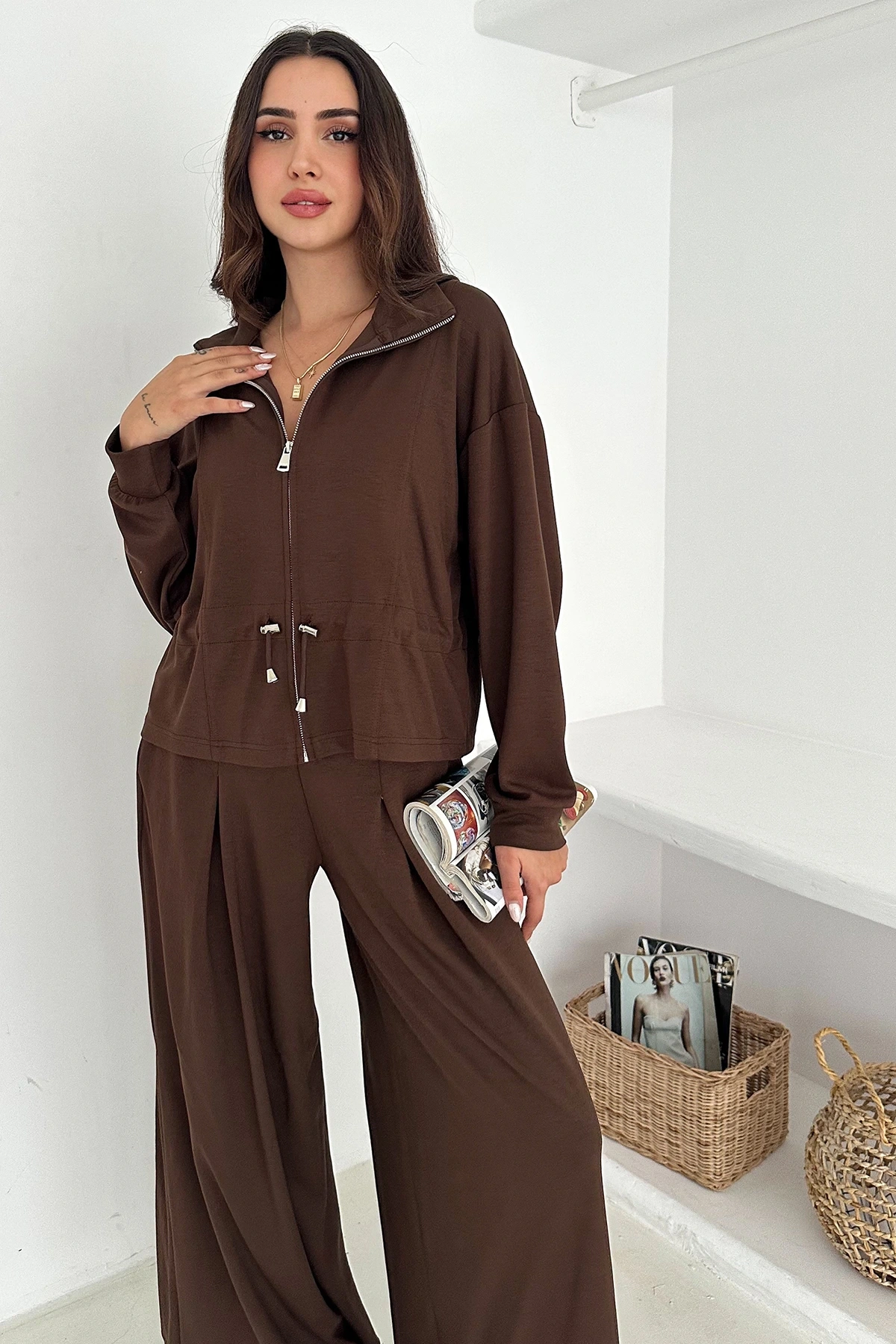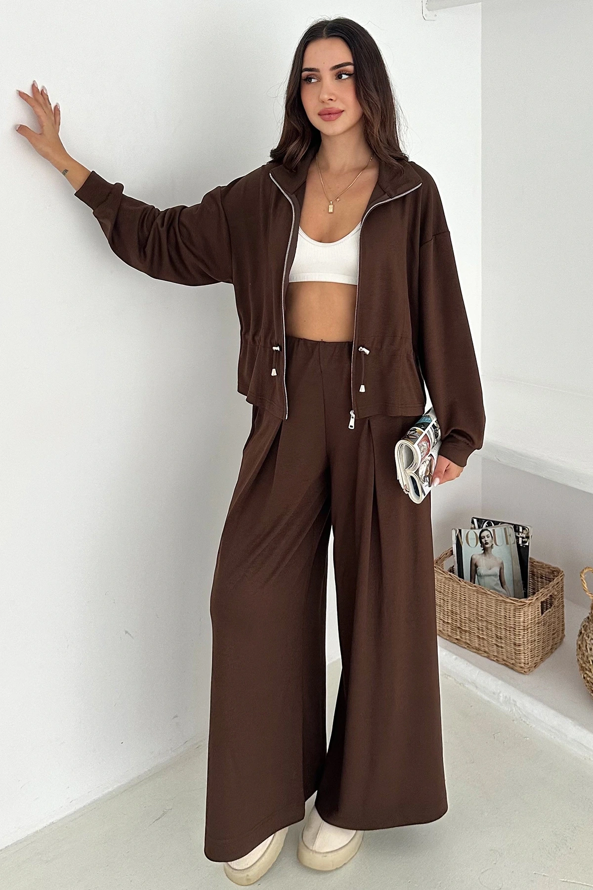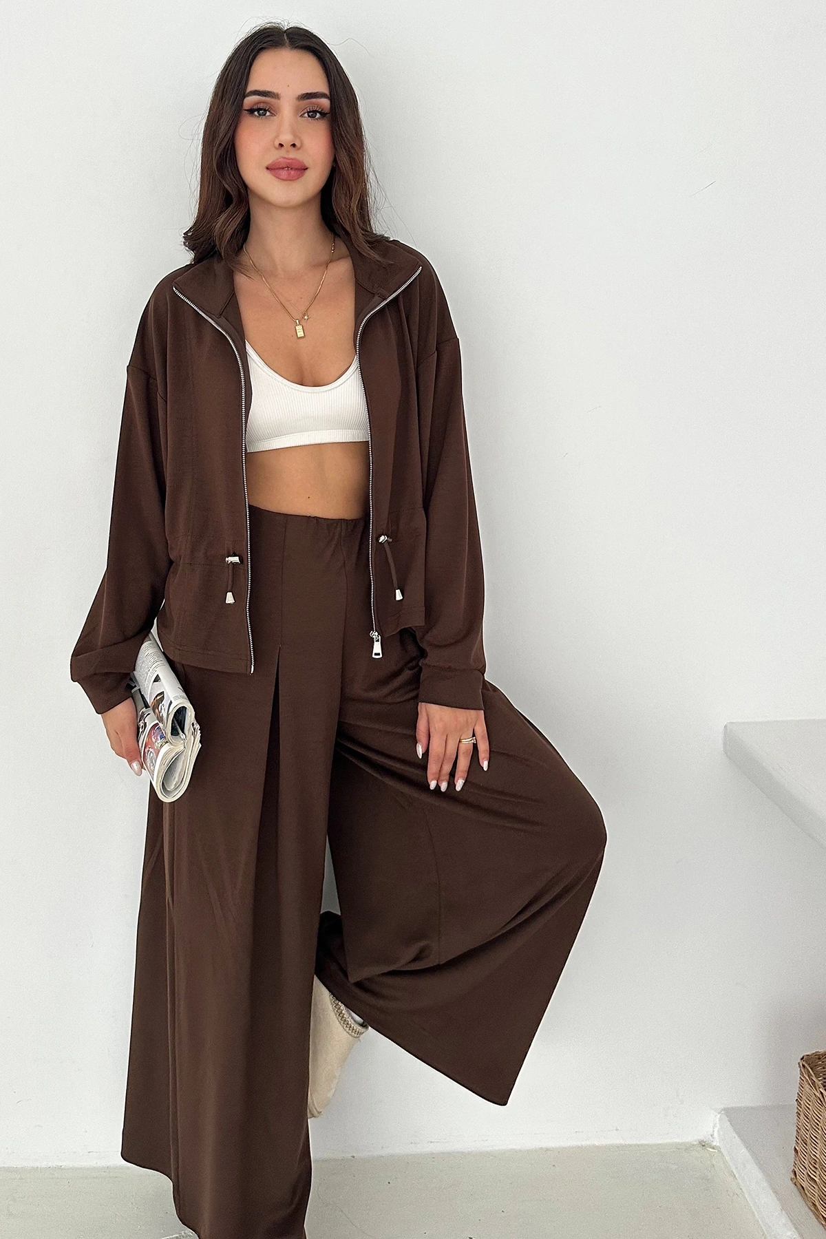 Fermuarlı Bel Detaylı Palazo Pantolonlu Modal Takım