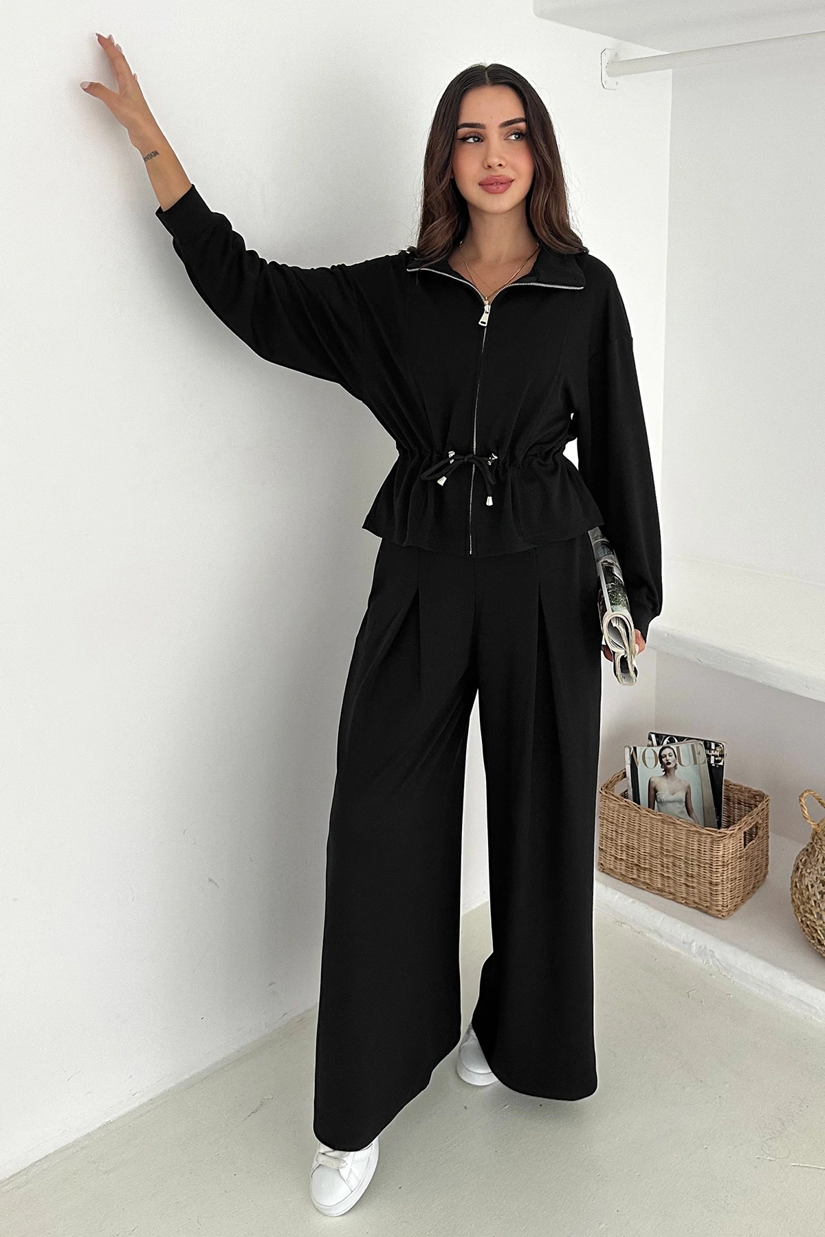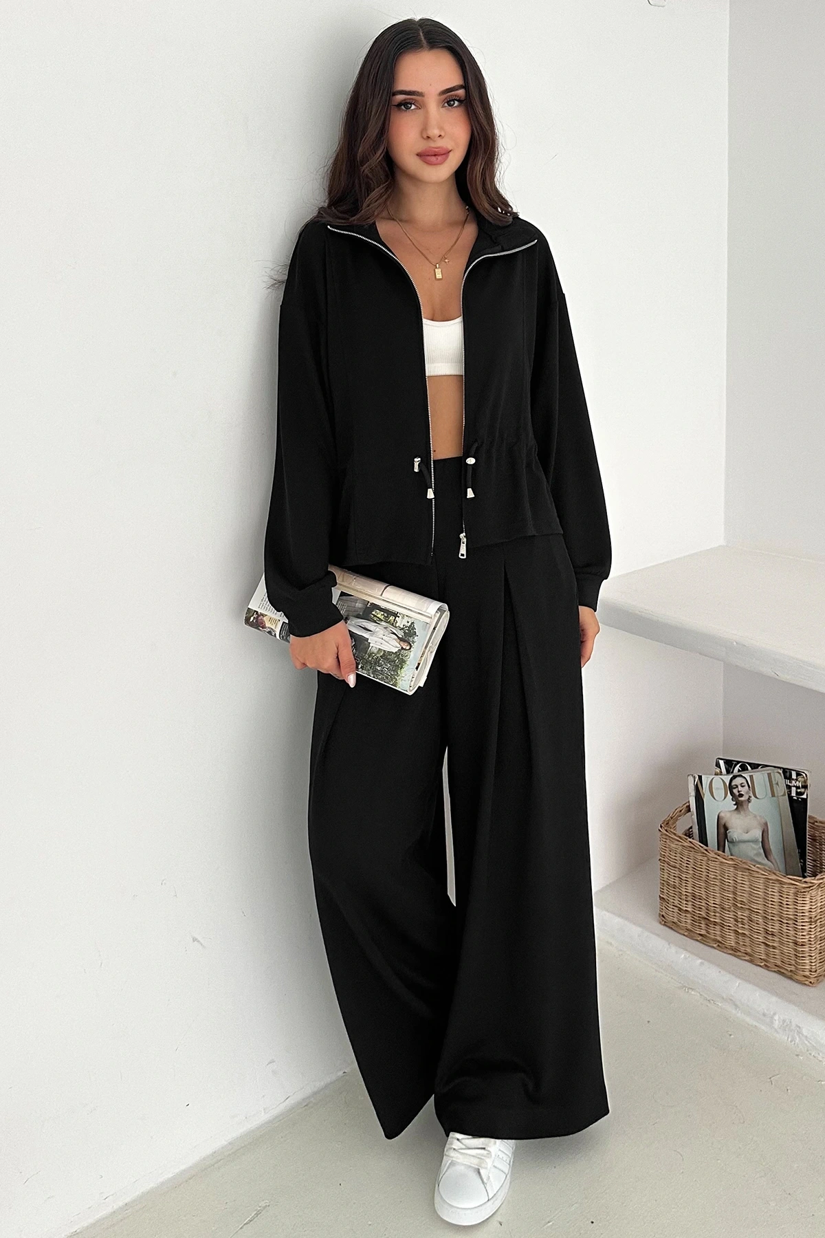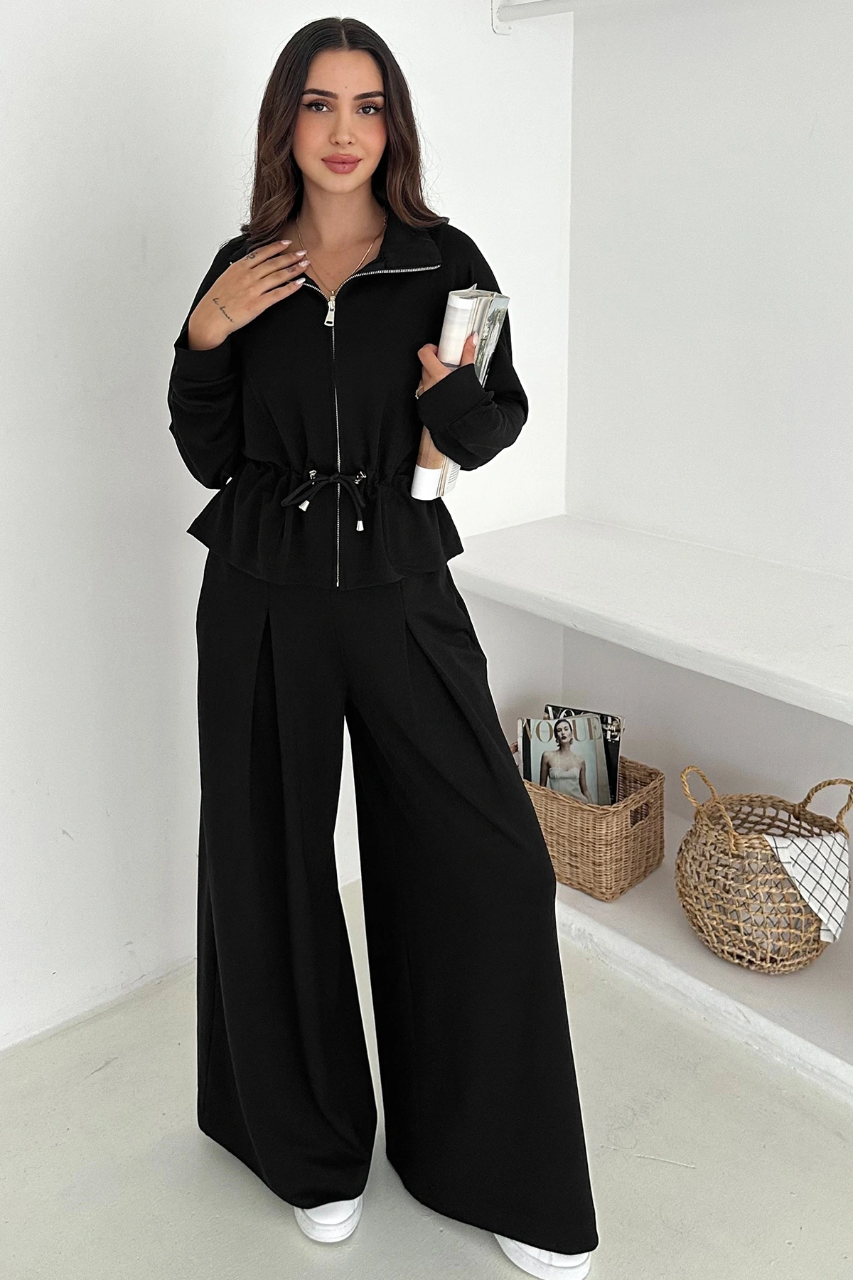 Fermuarlı Bel Detaylı Palazo Pantolonlu Modal Takım