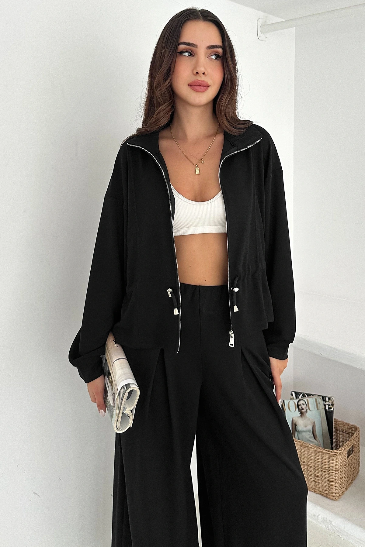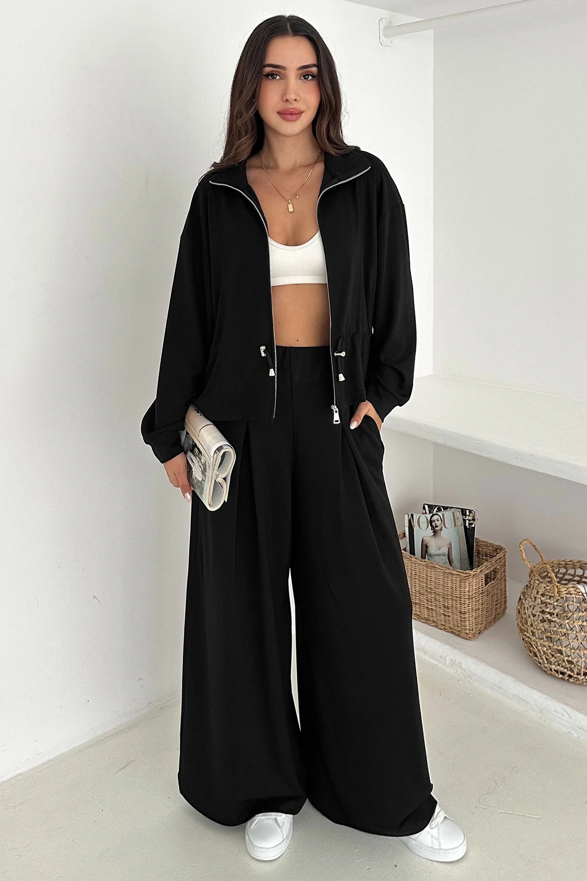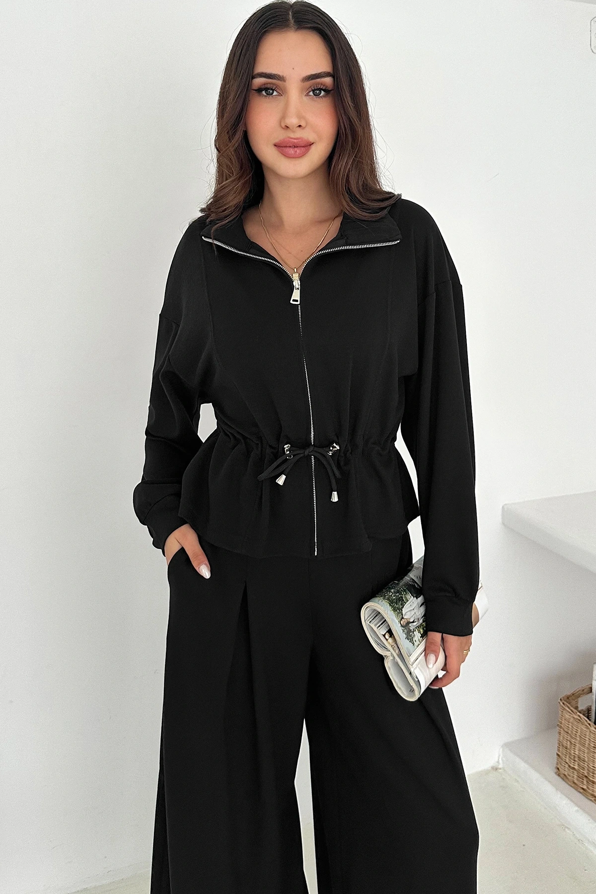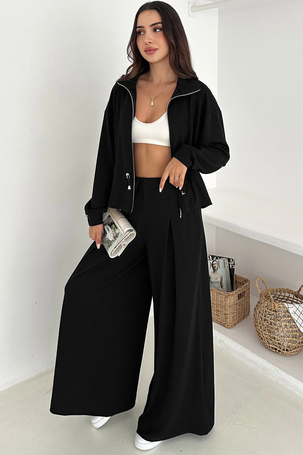Fermuarlı Bel Detaylı Palazo Pantolonlu Modal Takım
