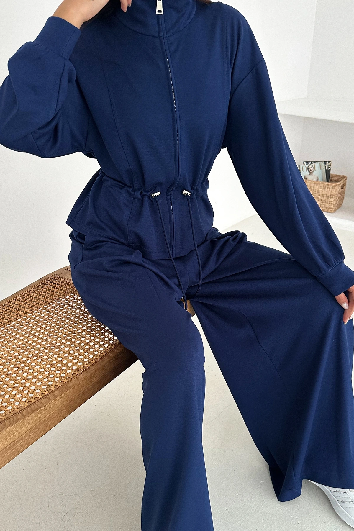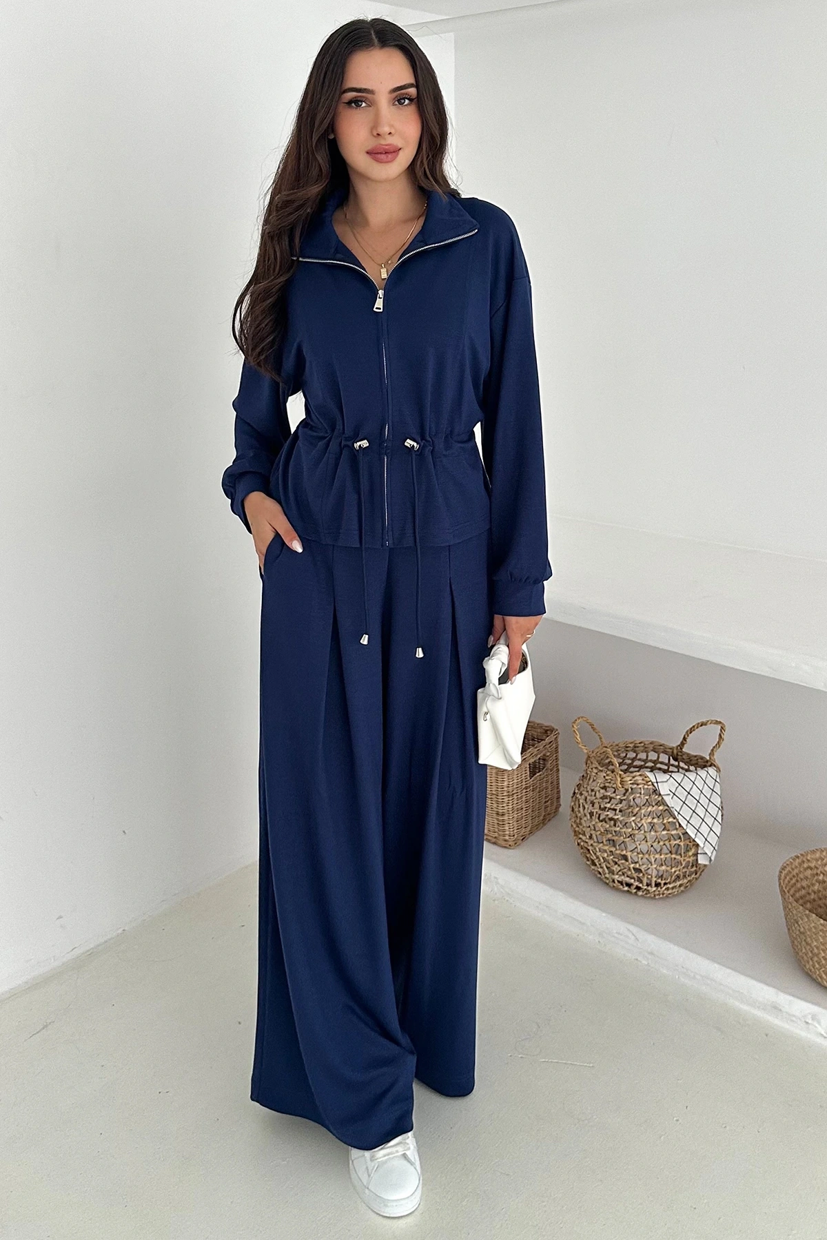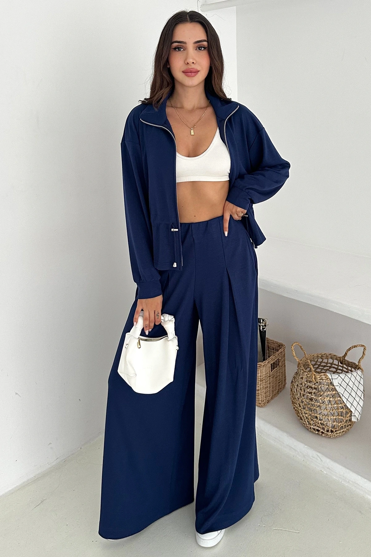 Fermuarlı Bel Detaylı Palazo Pantolonlu Modal Takım