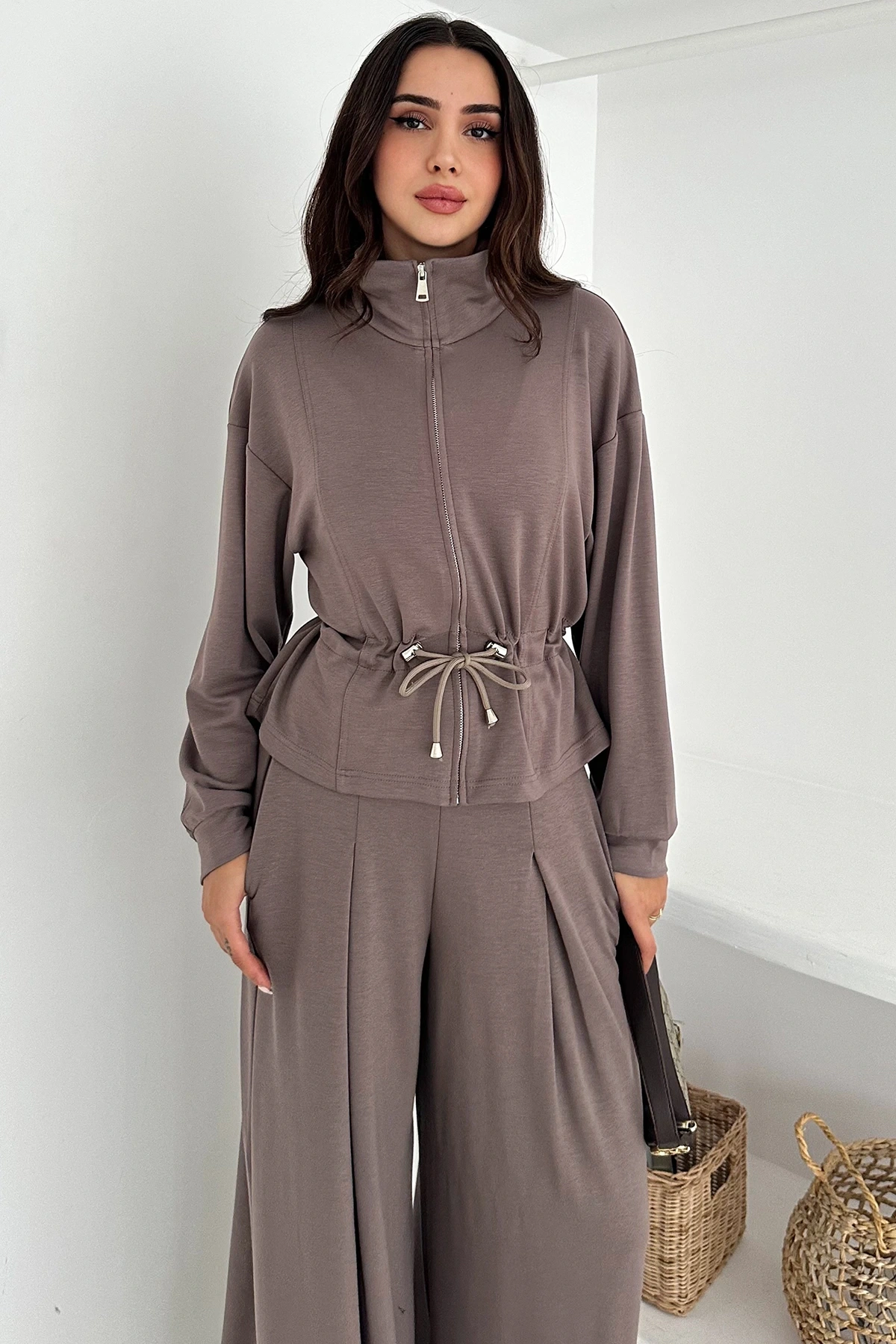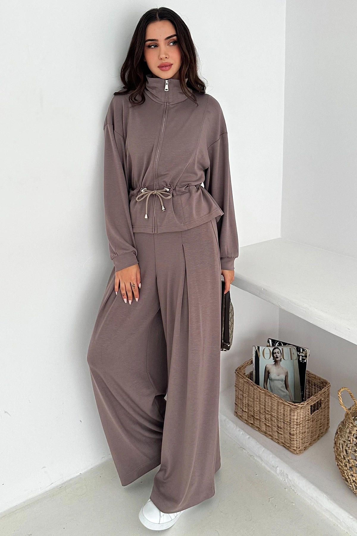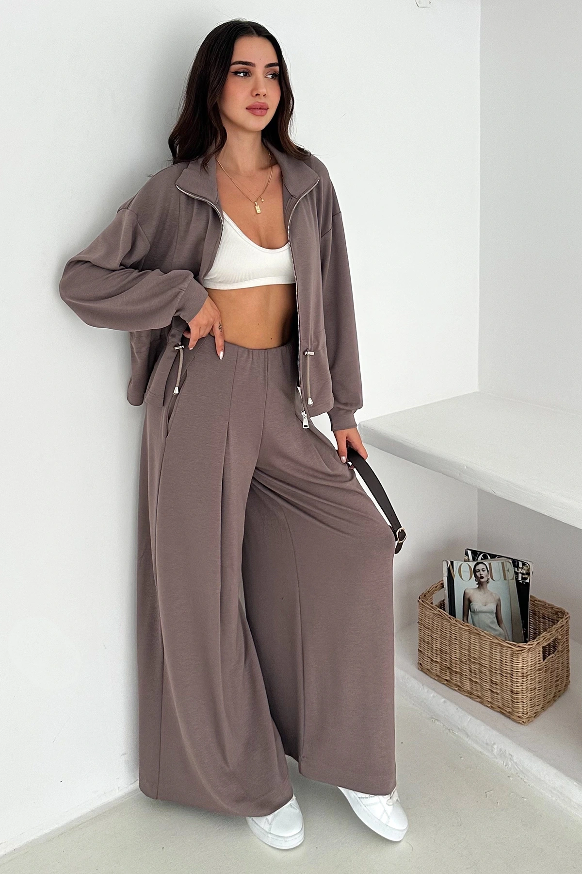 Fermuarlı Bel Detaylı Palazo Pantolonlu Modal Takım