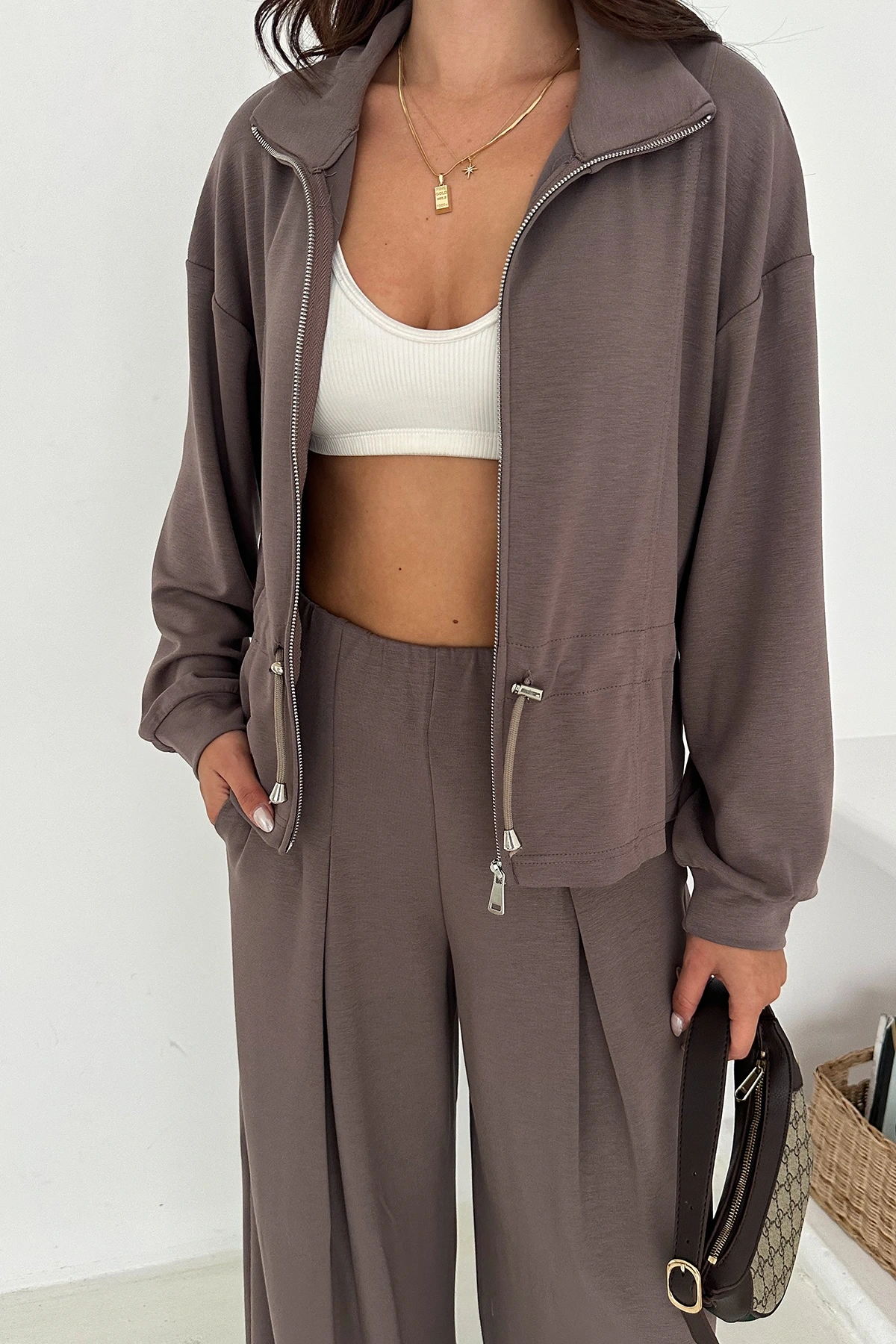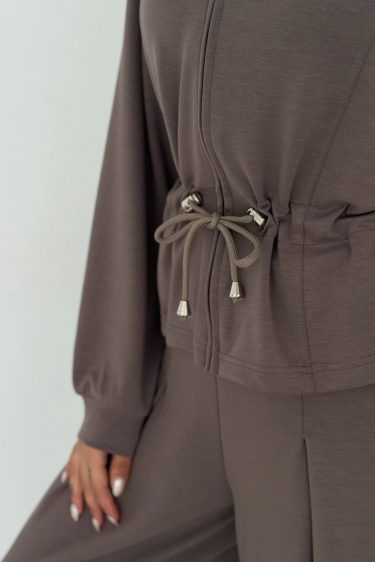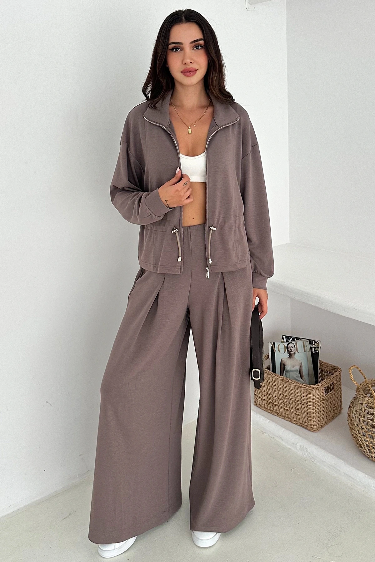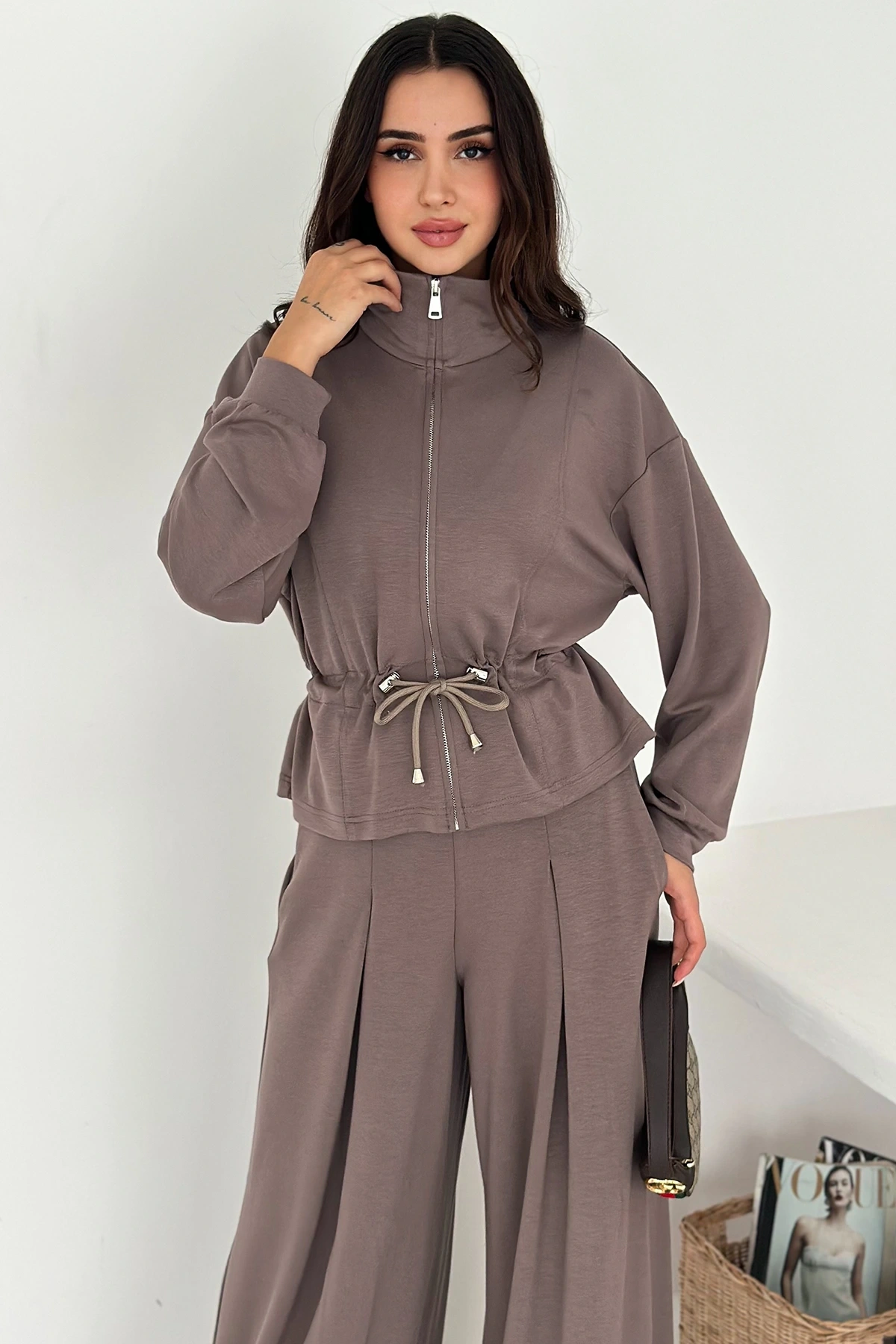 Fermuarlı Bel Detaylı Palazo Pantolonlu Modal Takım