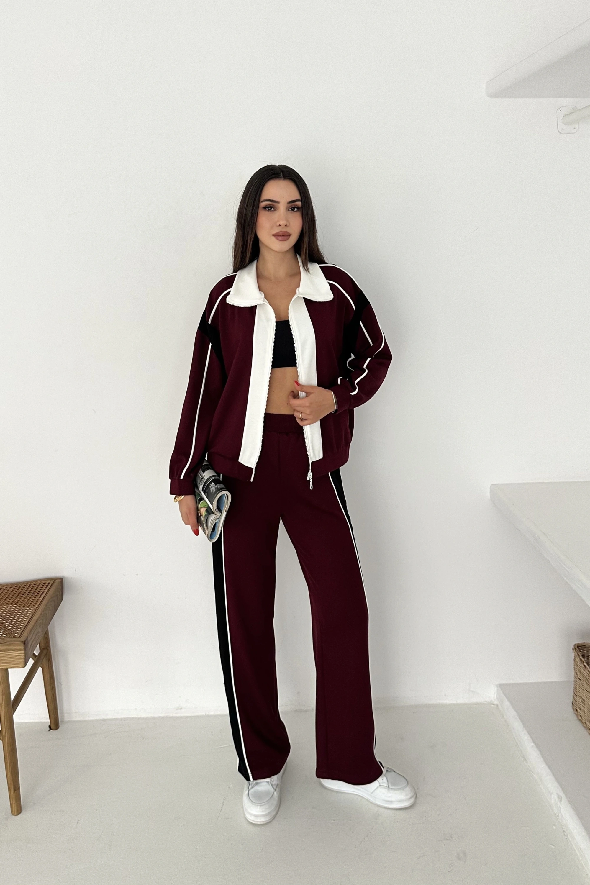 Şal Yaka Çift Fermuarlı Stoperli Modal Takım