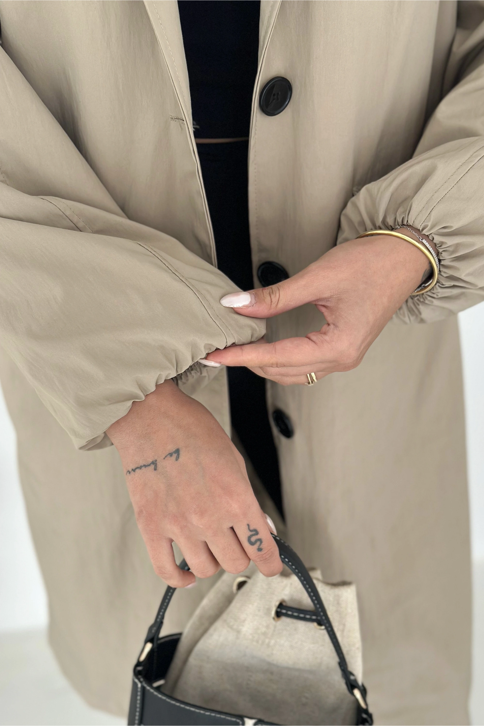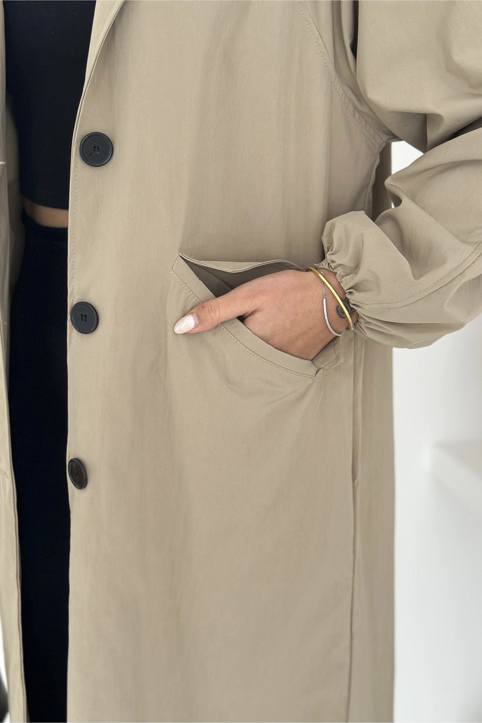 Kısa Trençkot Düğmeli Siyah