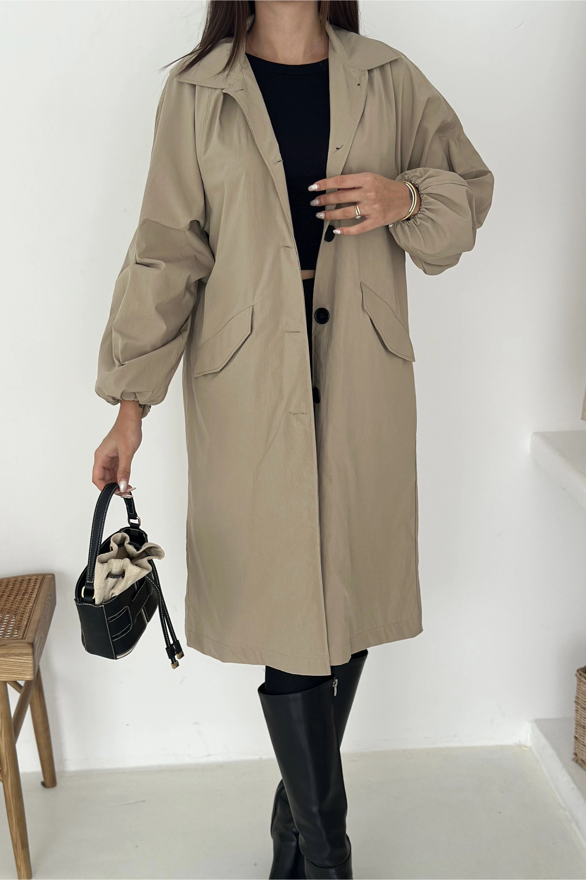 Kadın Astarlı Uzun Trençkot