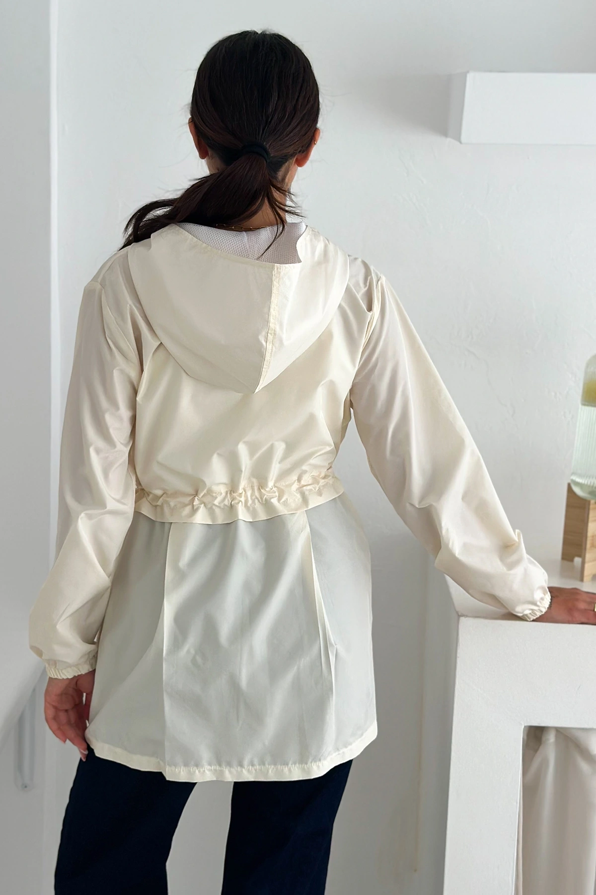 Yarım Fermuarlı Stoperli Camel Renk Yağmurluk