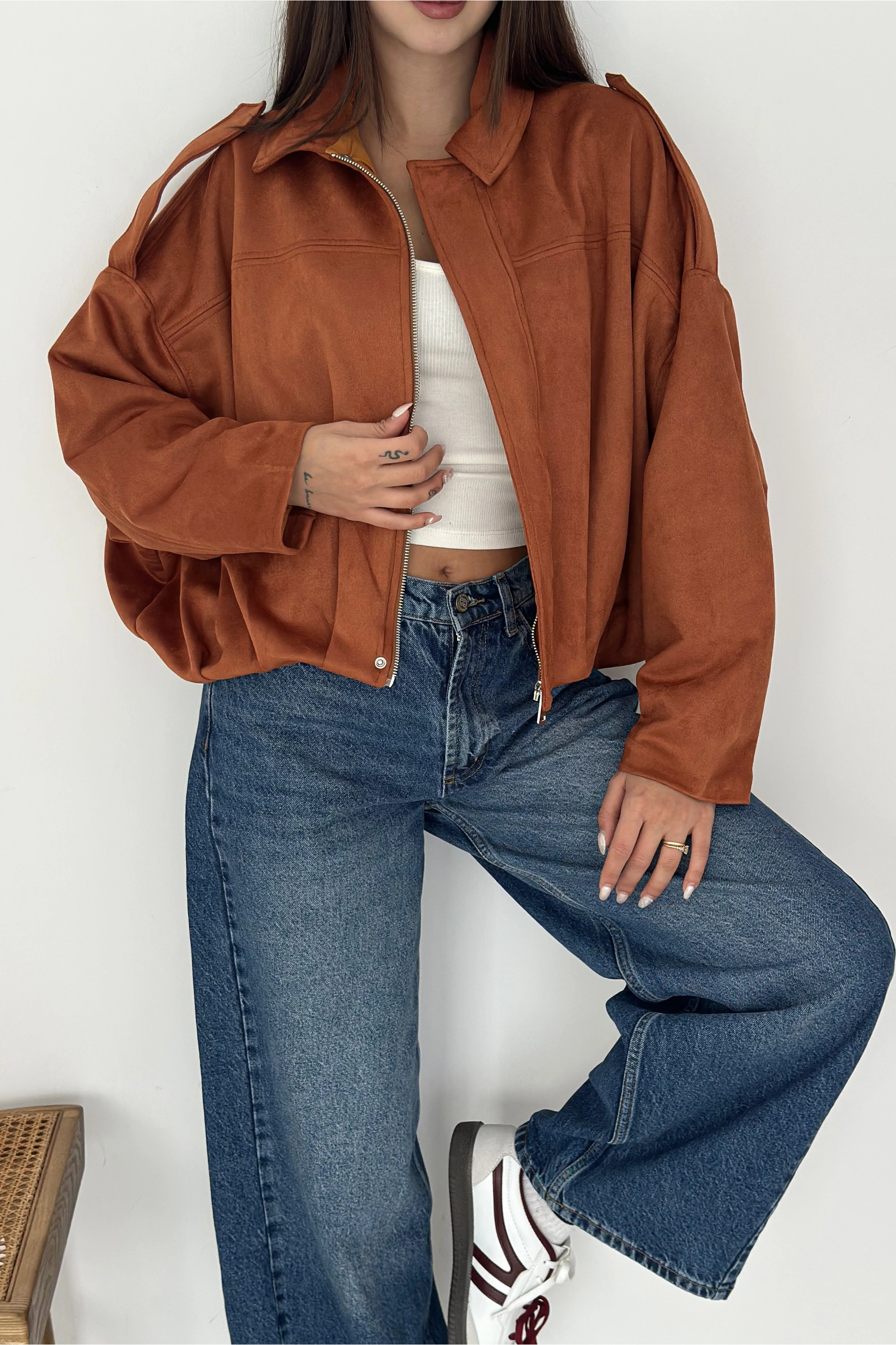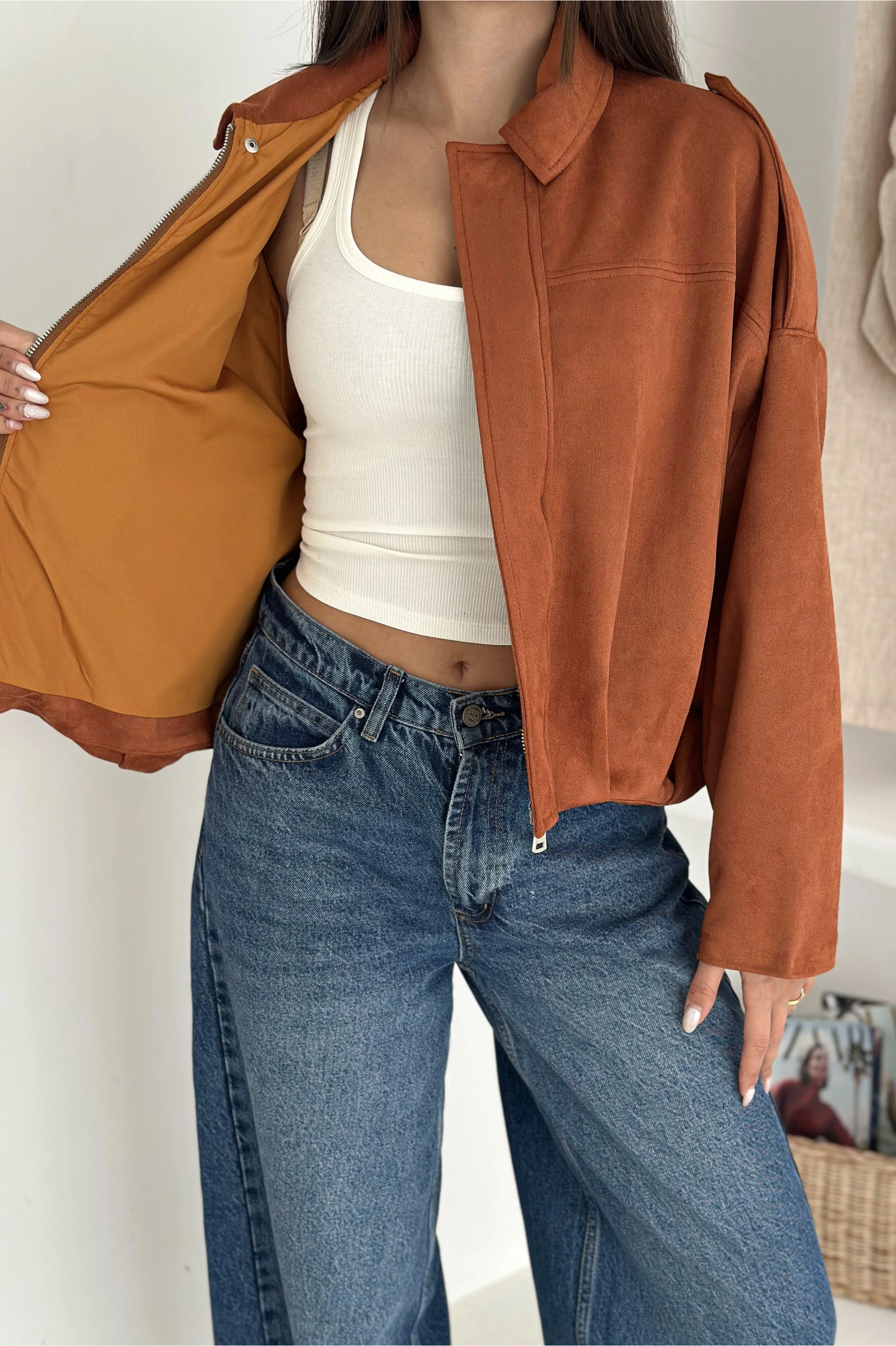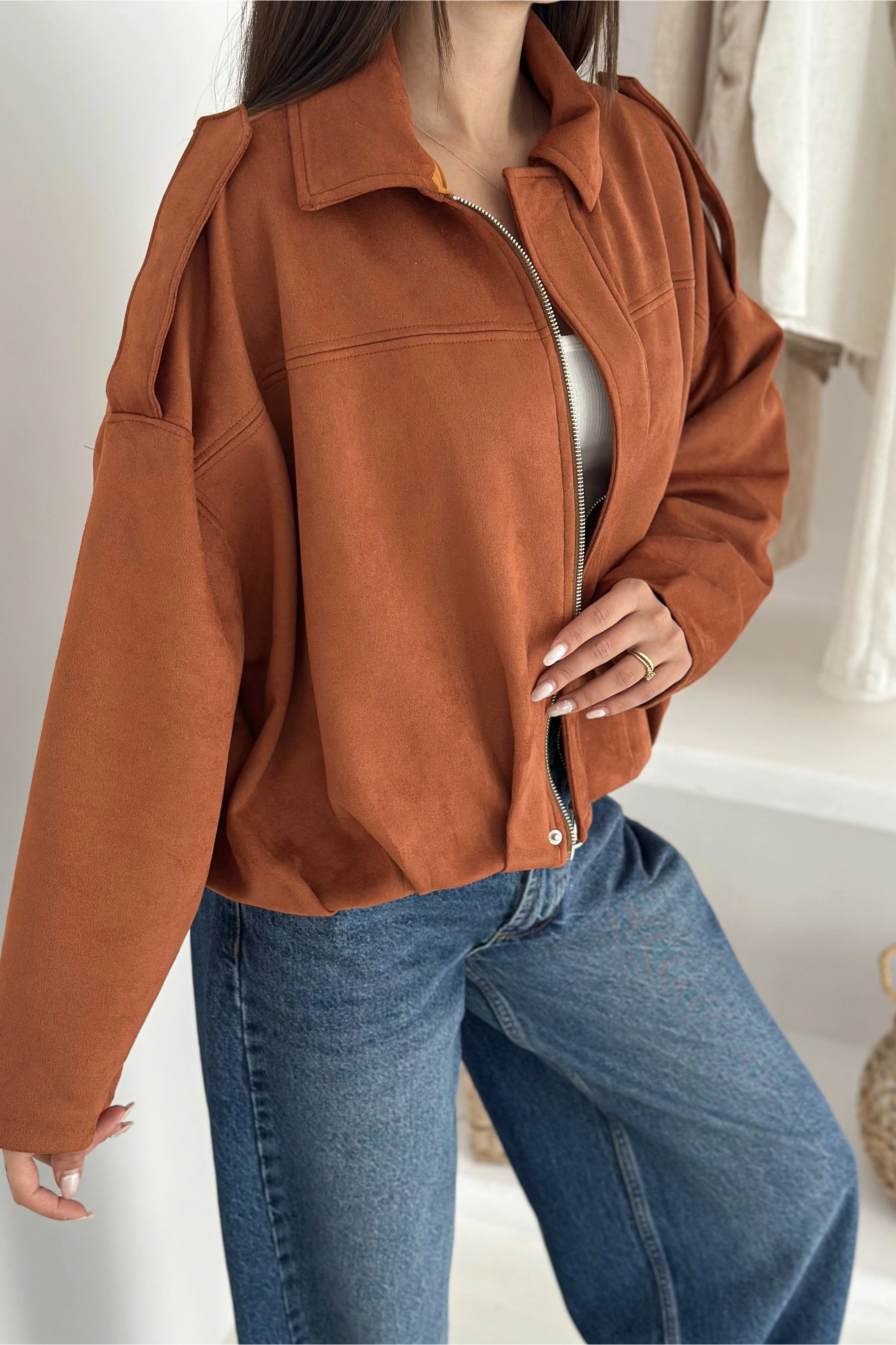 Oversize Astarlı Bomber Süet Ceket