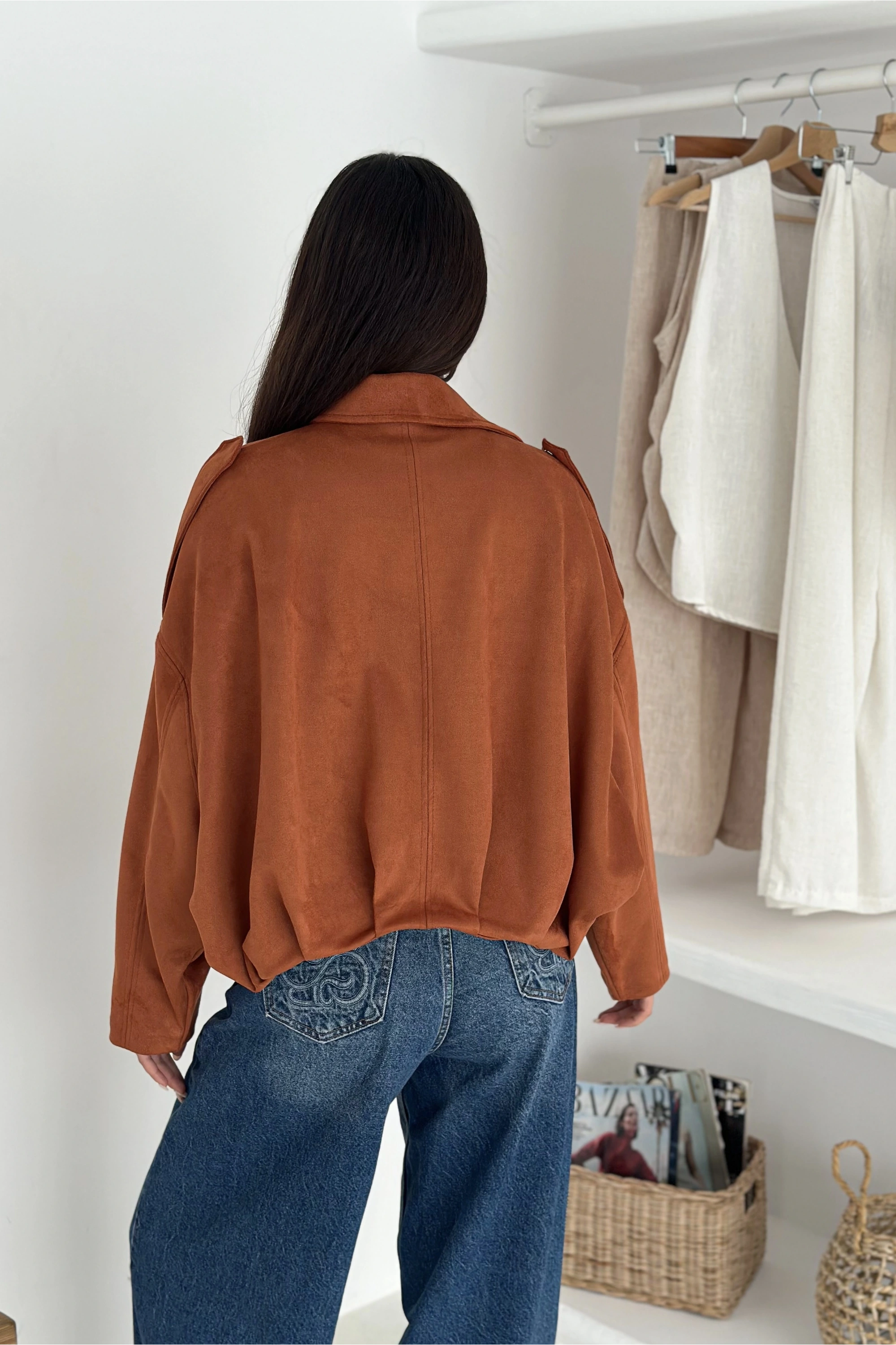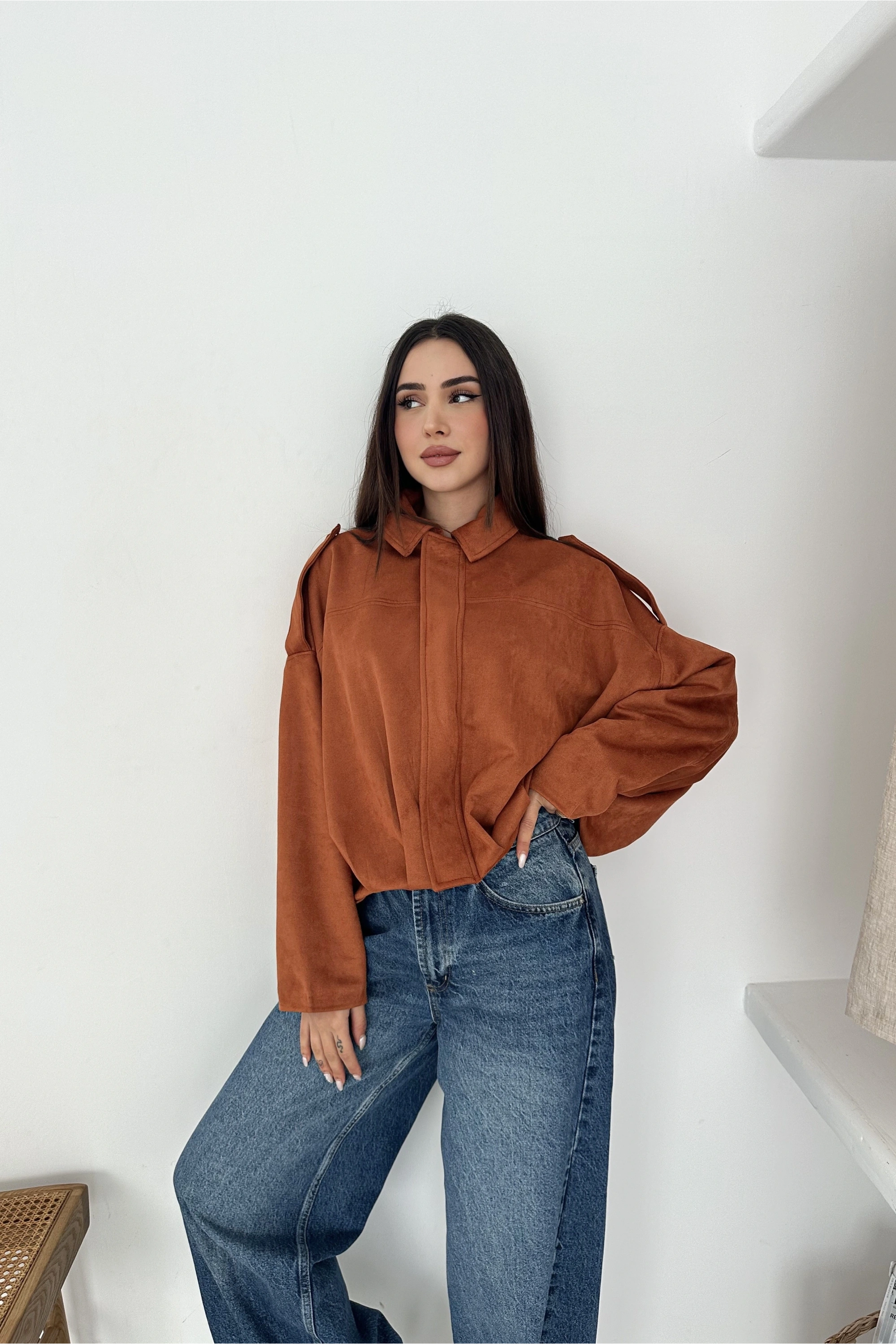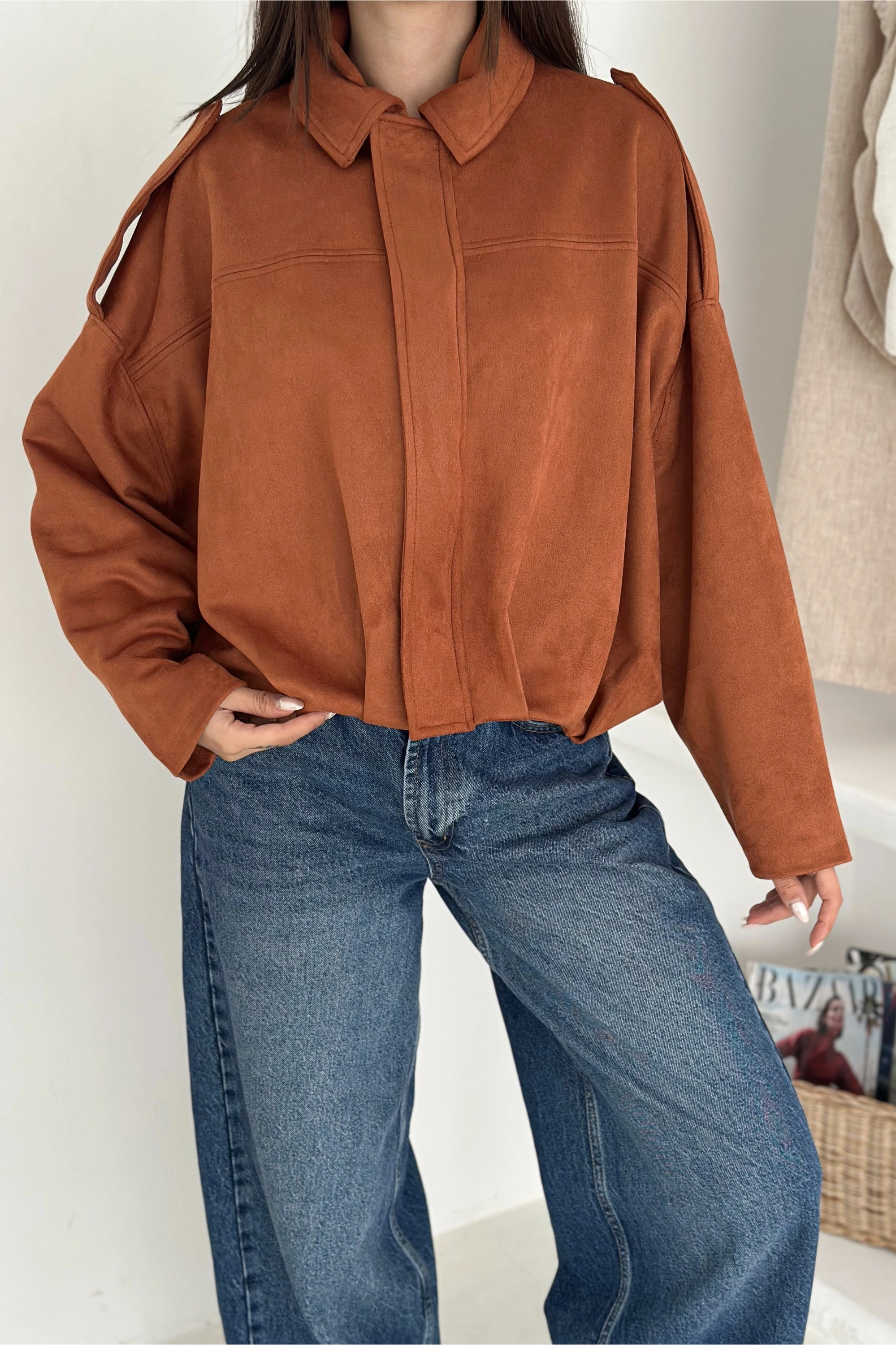 Oversize Astarlı Bomber Süet Ceket