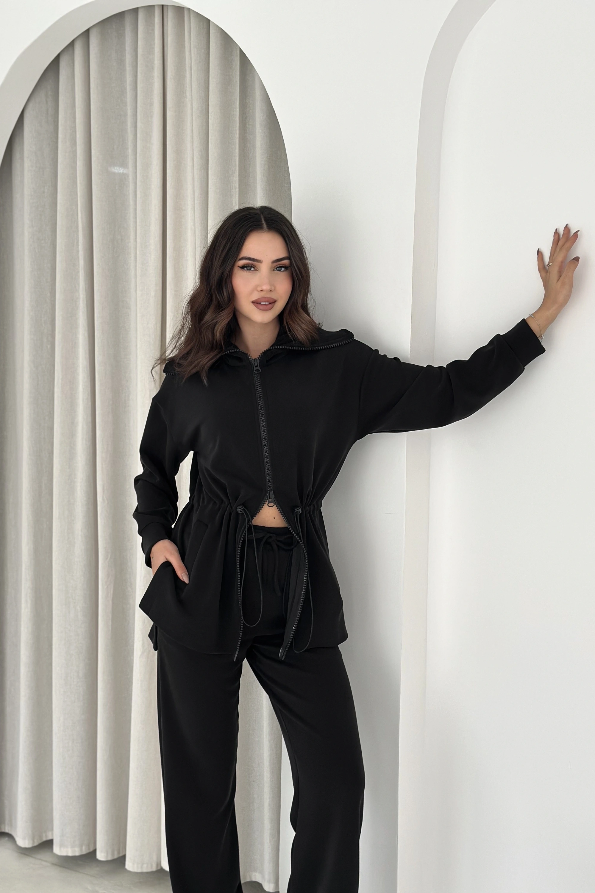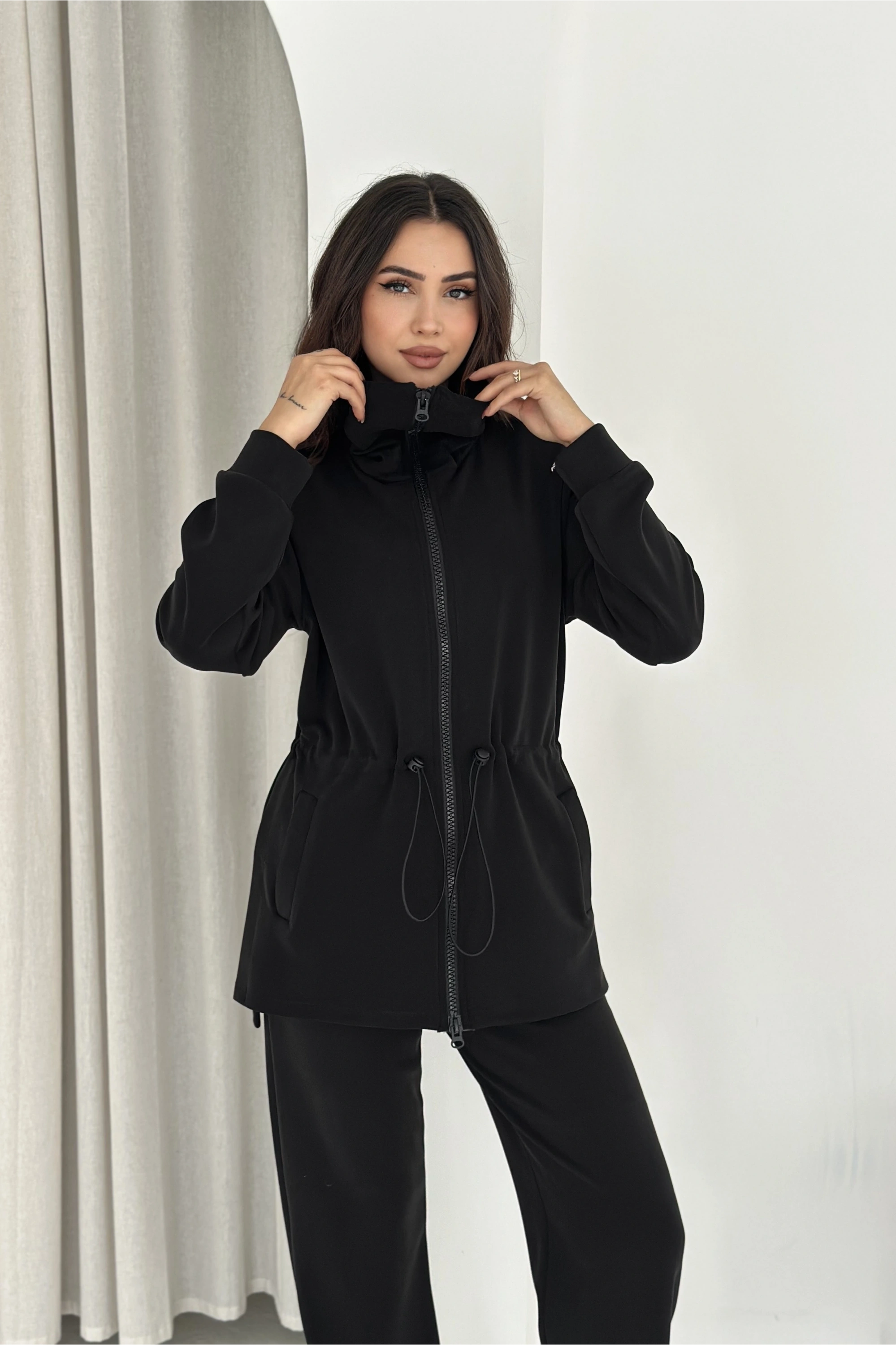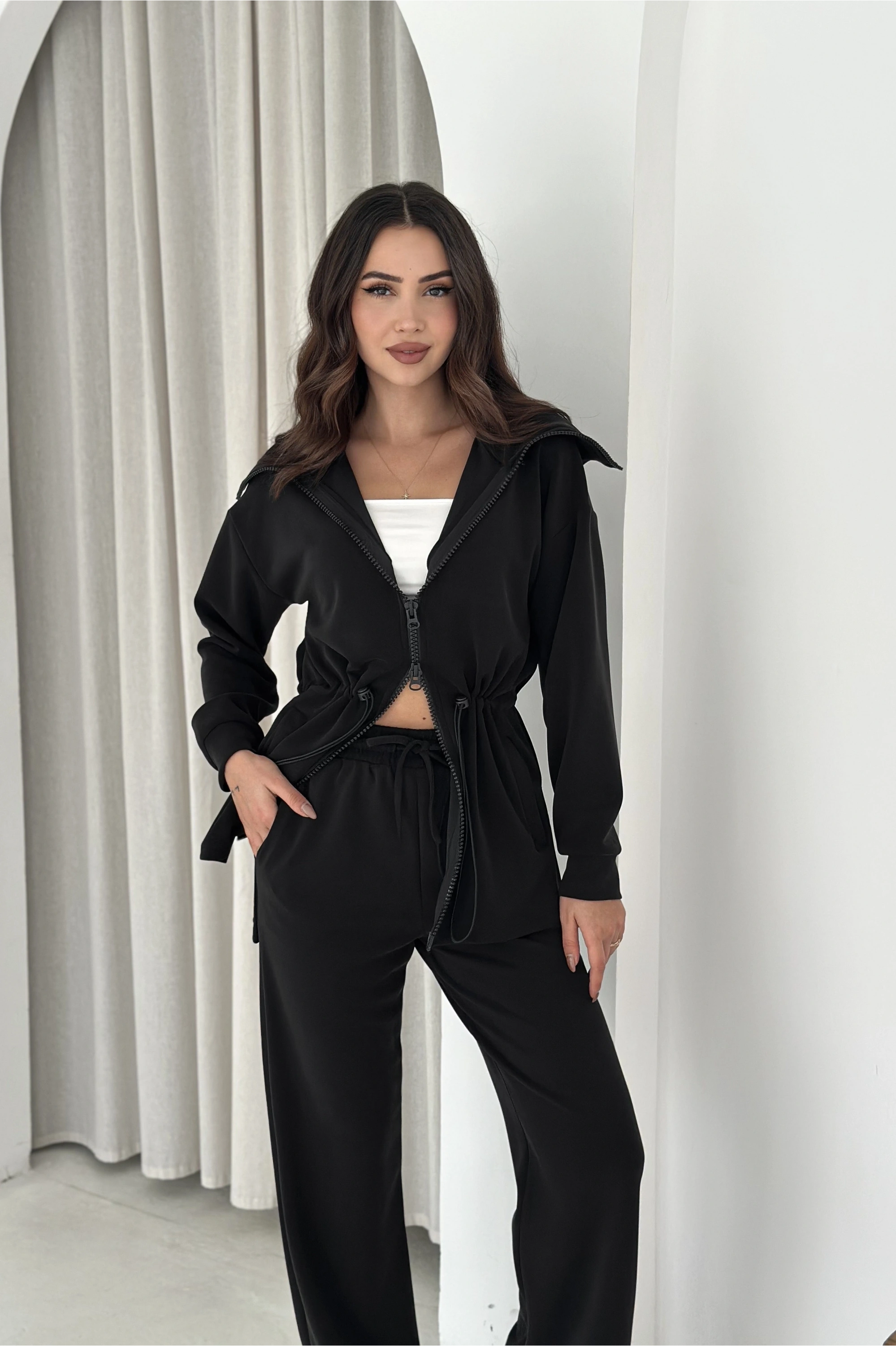 Beli Lastikli Fermuarlı Kapşonlu Premium Kalite Modal Takım