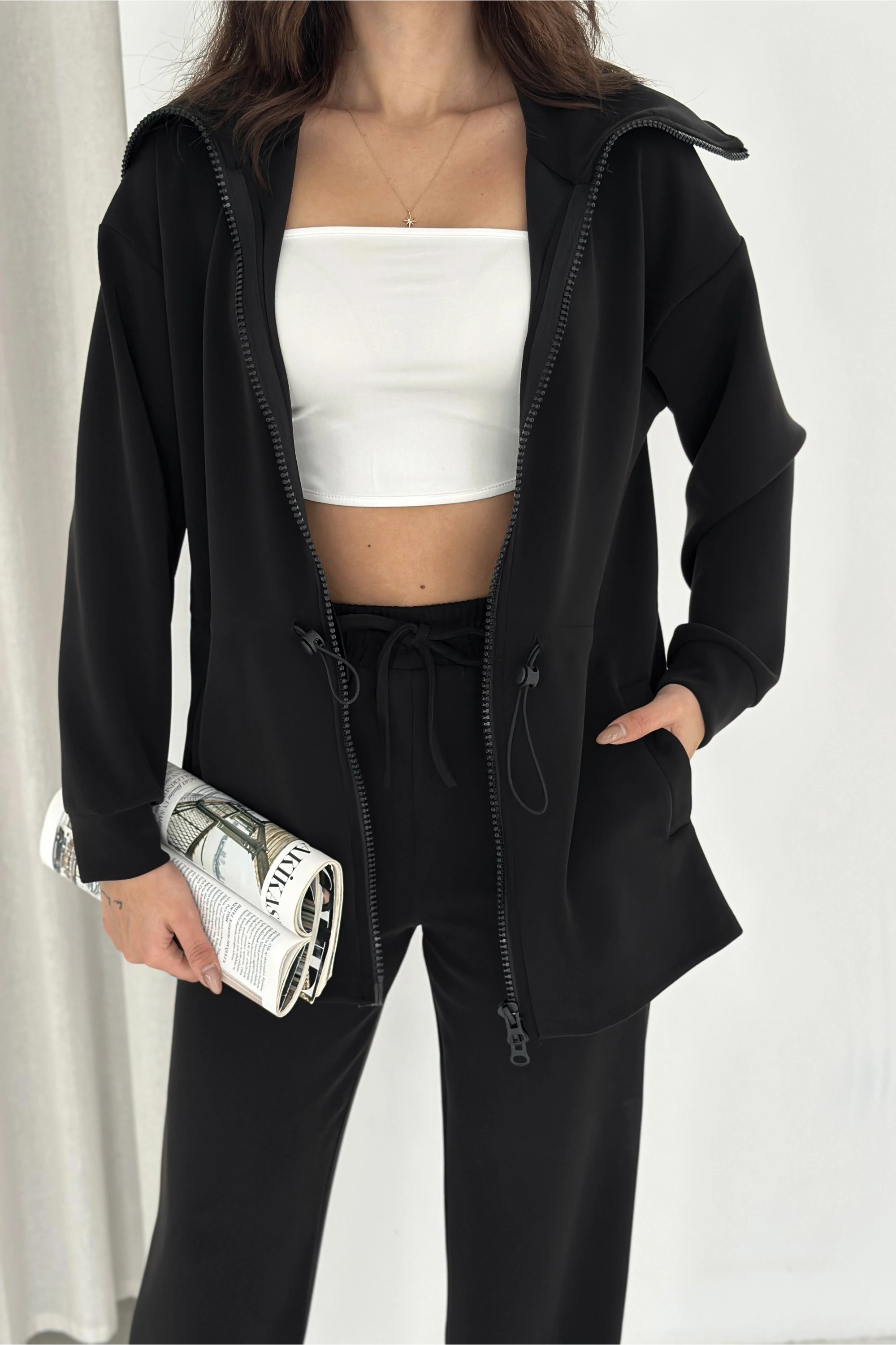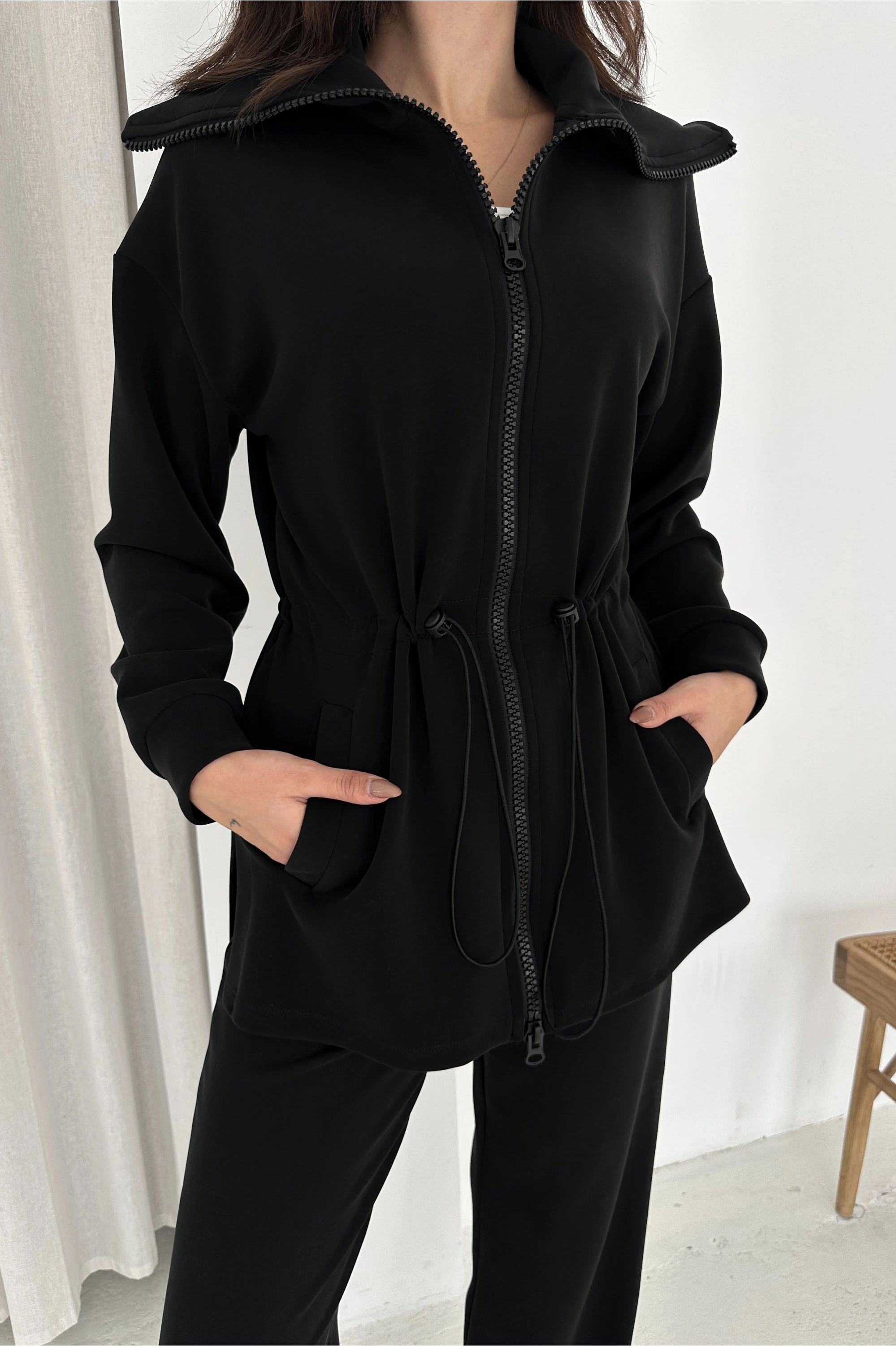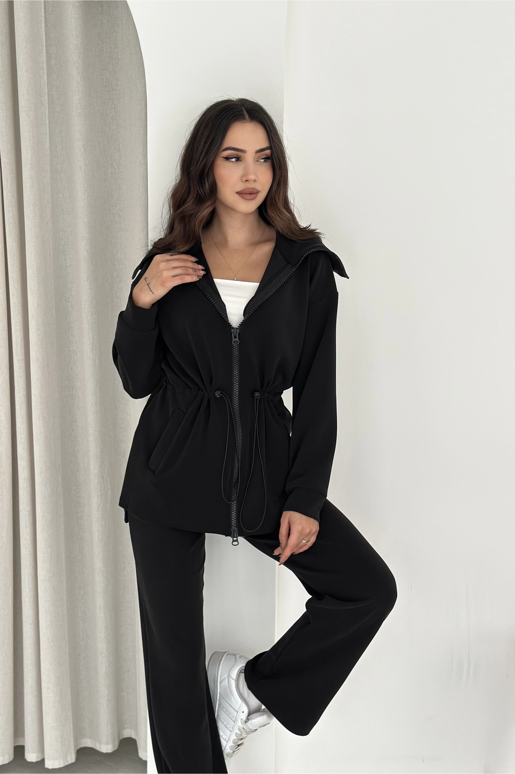 Beli Lastikli Fermuarlı Kapşonlu Premium Kalite Modal Takım