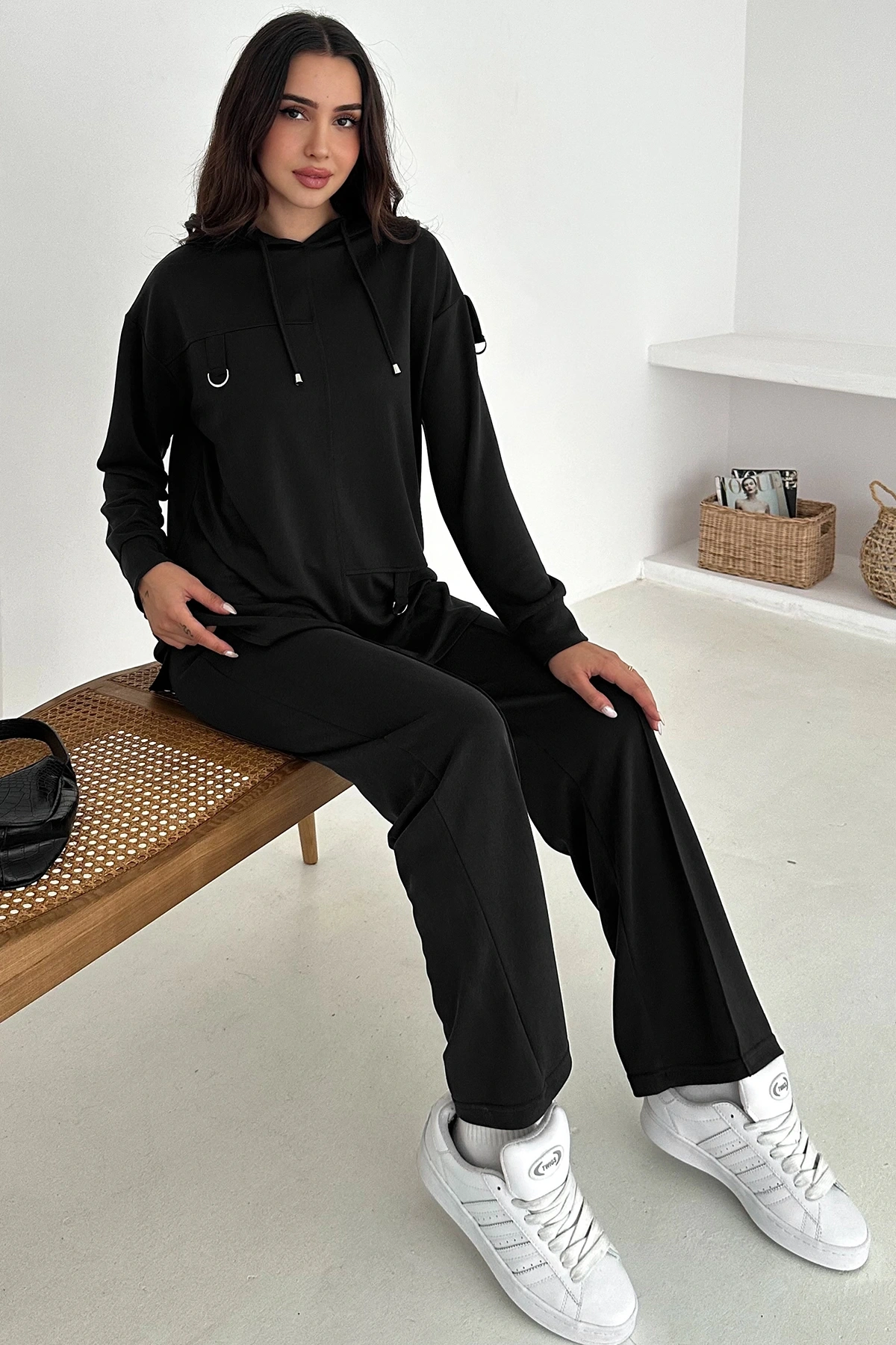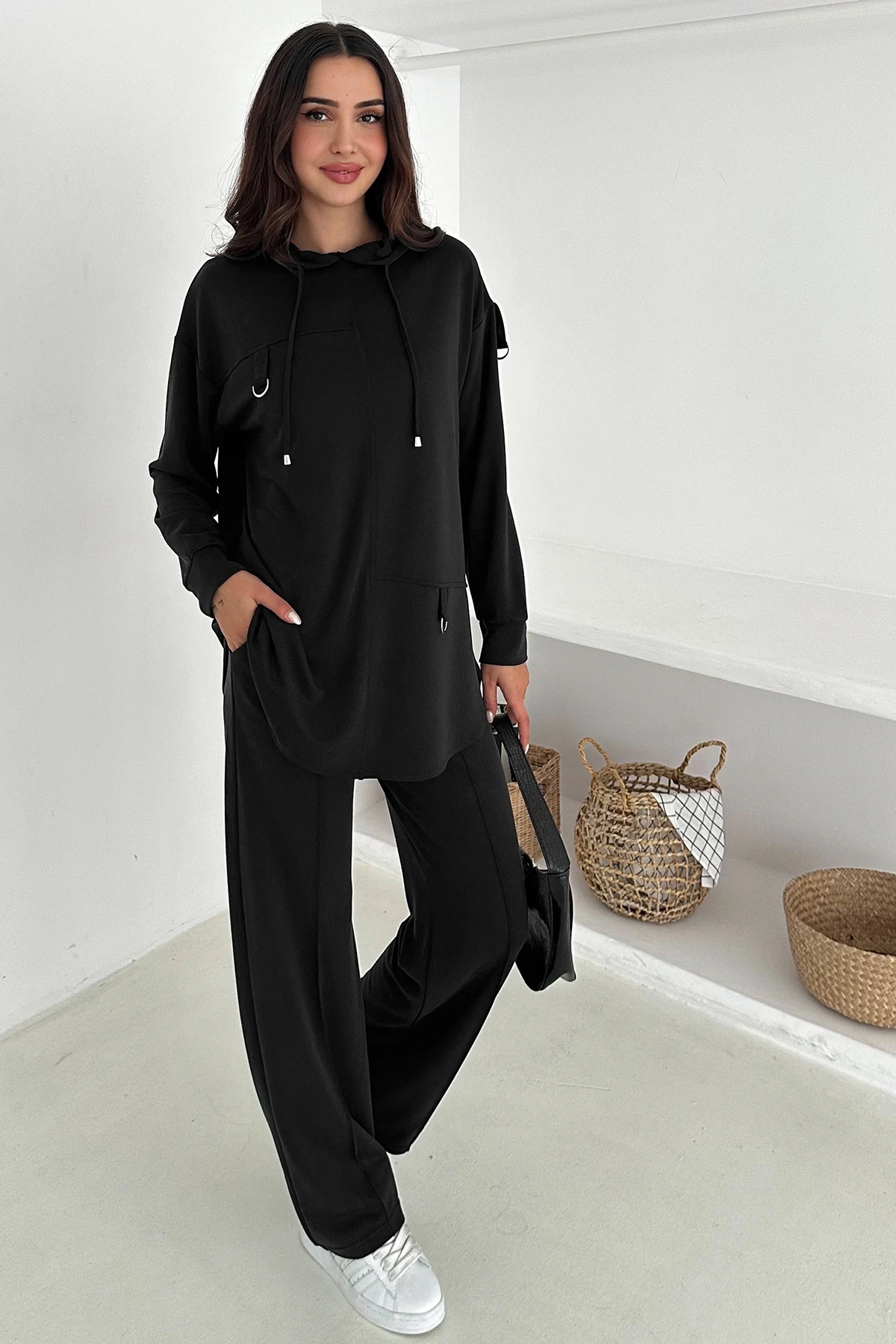 Fermuarlı Bel Detaylı Palazo Pantolonlu Modal Takım
