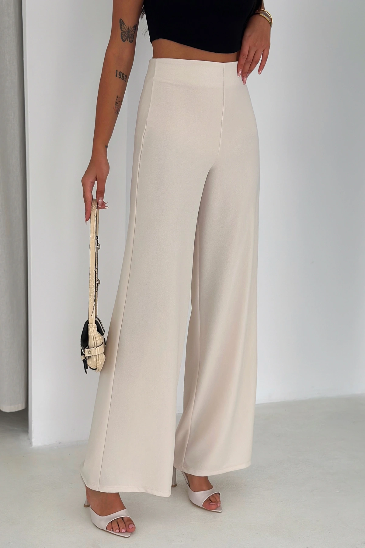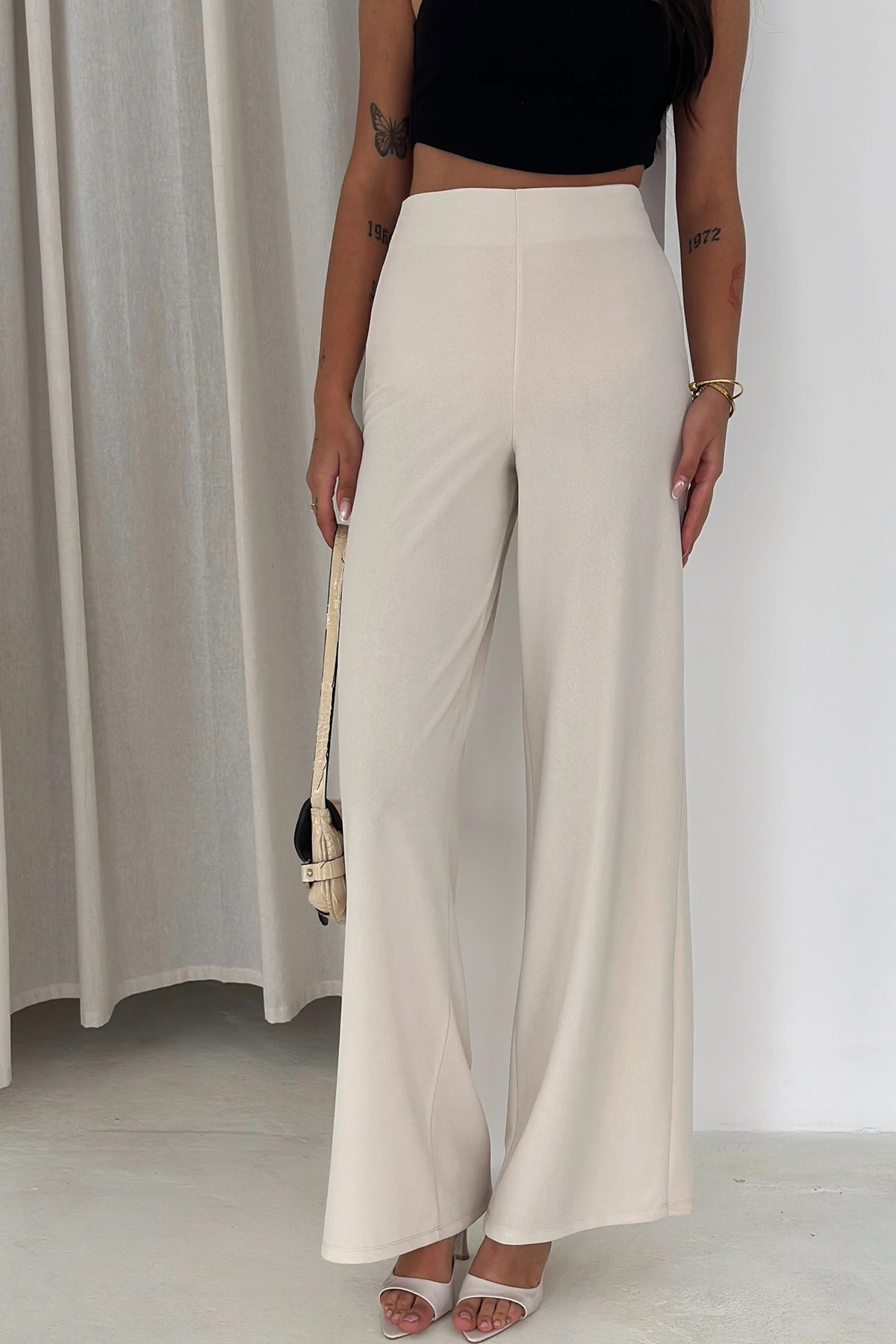 Yandan Fermuarlı Yüksek Bel Krep Pantolon