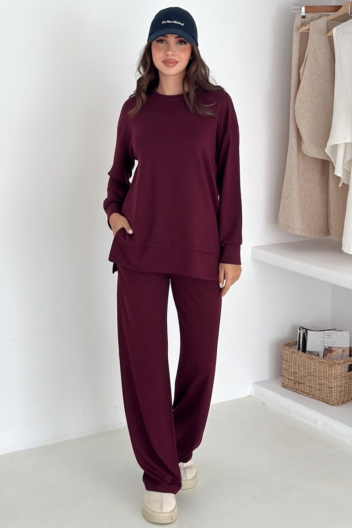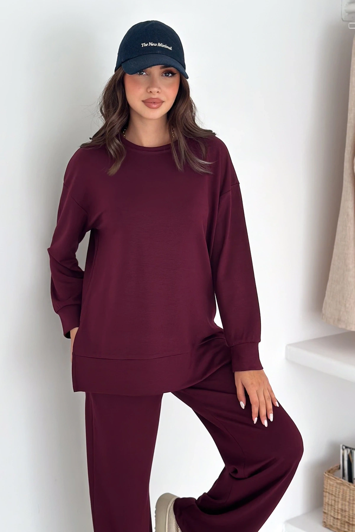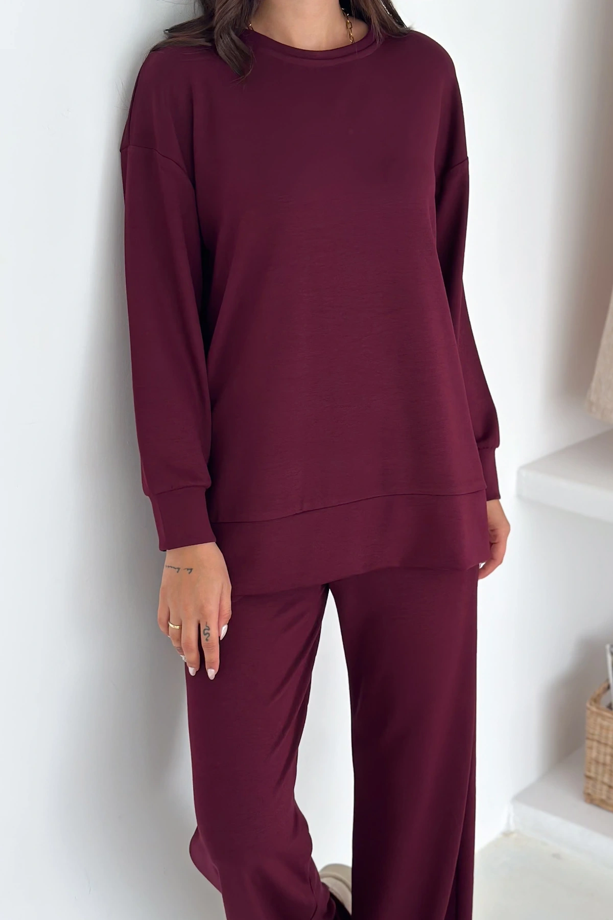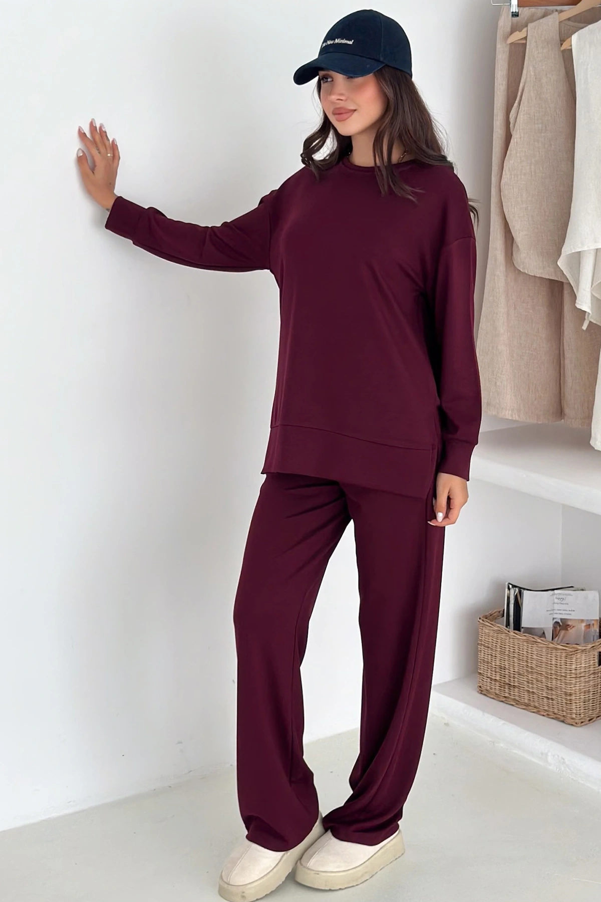Fermuarlı Bel Detaylı Palazo Pantolonlu Modal Takım