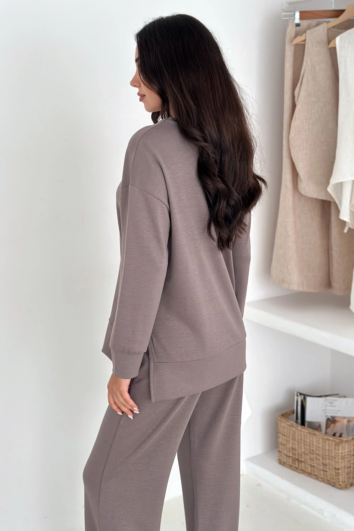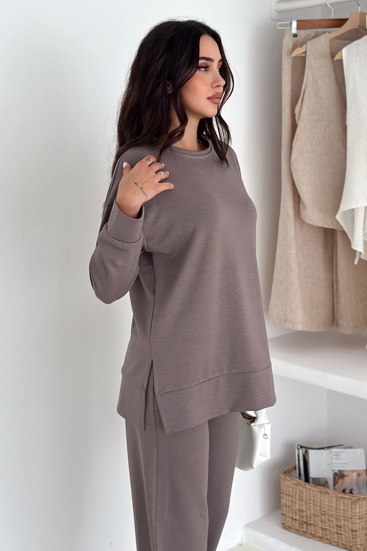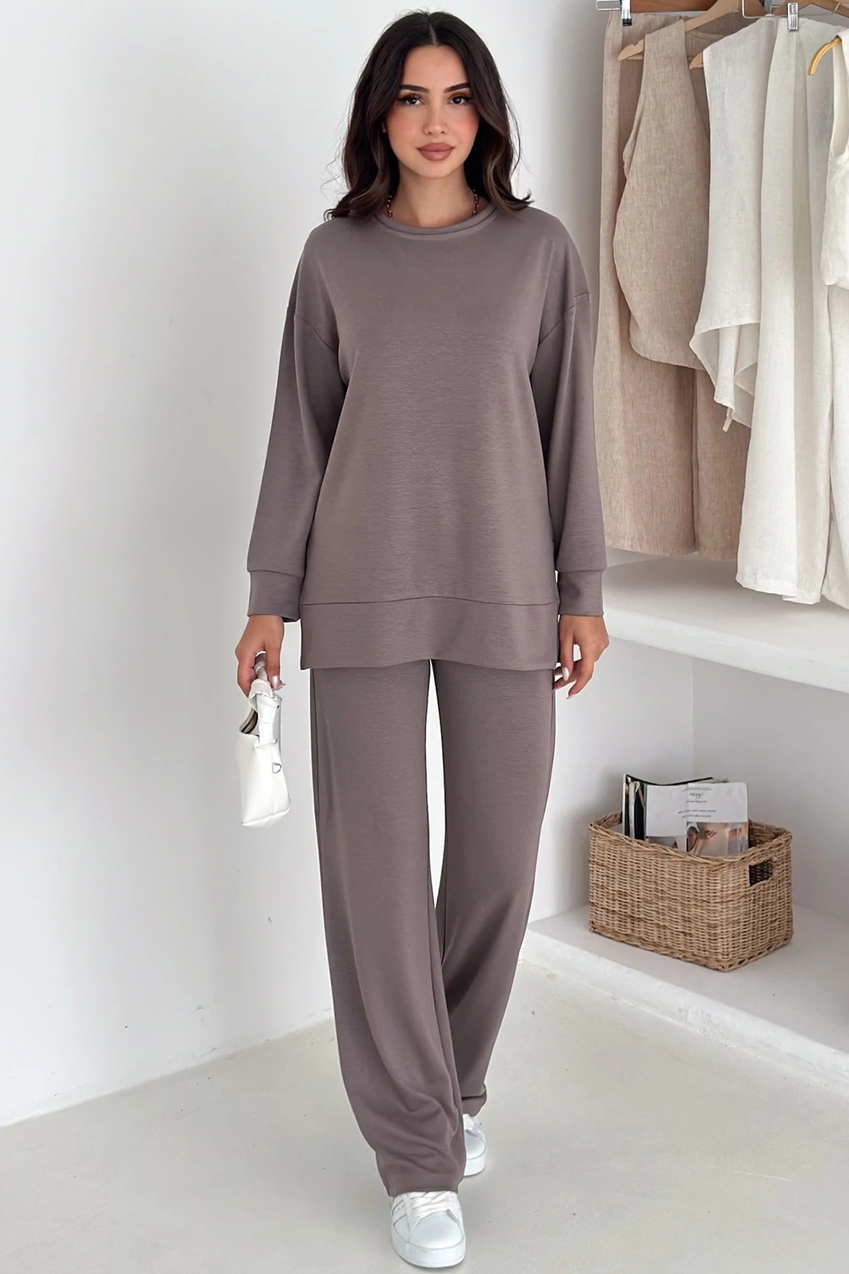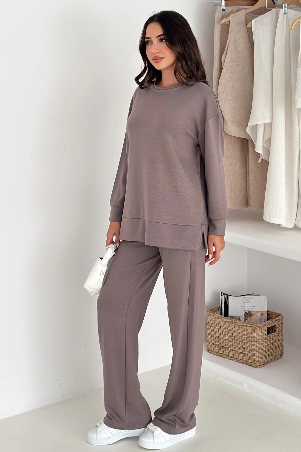 Fermuarlı Bel Detaylı Palazo Pantolonlu Modal Takım